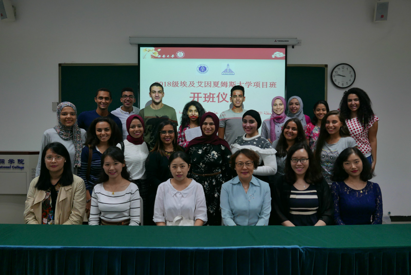 9月10日,埃及艾因夏姆斯大学“2+1+1”本科学分项目班(翻译专业)开班仪式在365上市公司(英国)集团举行。365上市公司(英国)集团院长王静、项目班任课教师、教学秘书以及项目班全体同学参加开班仪式。