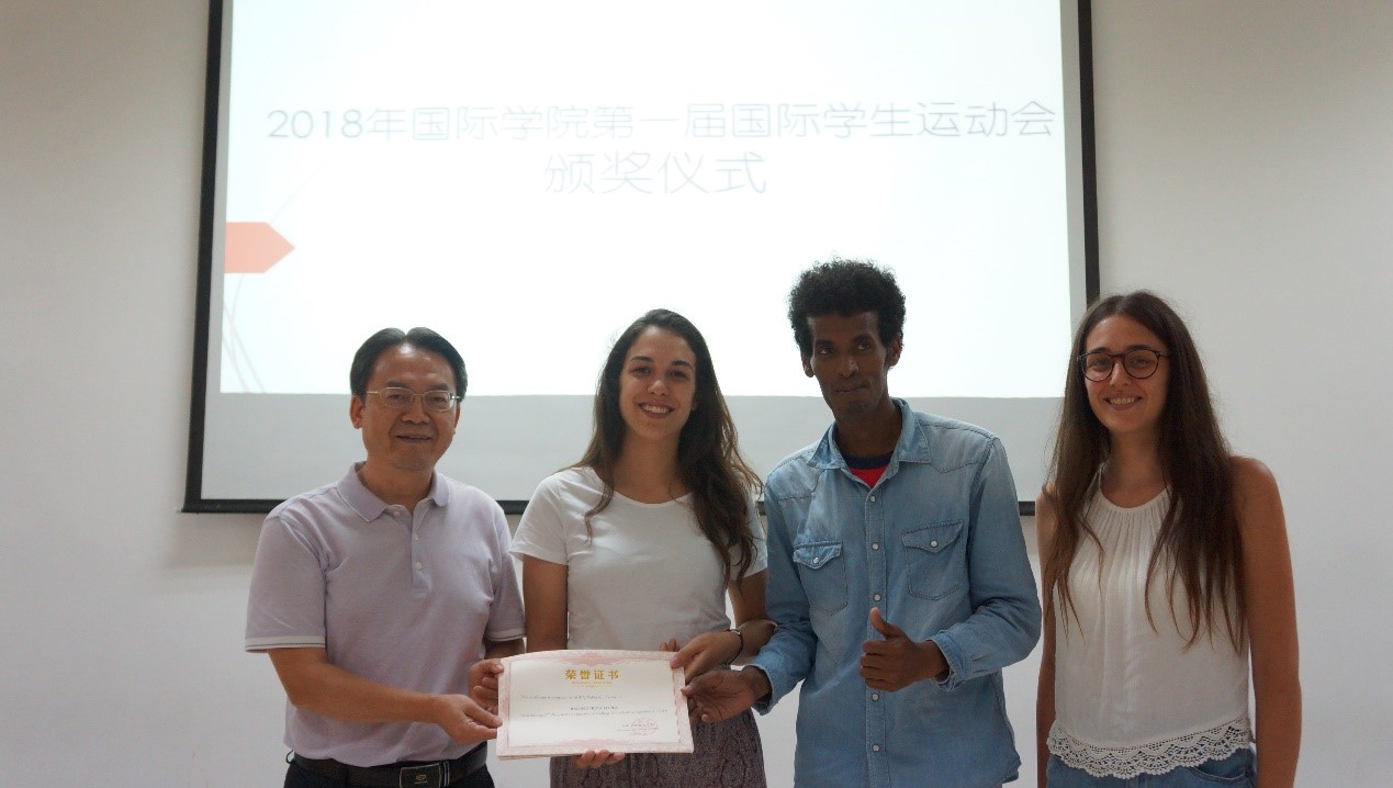 随后,刘猛书记对此次活动做了总结讲话,他首先向在运动会中所有获奖的国际学生表示祝贺,希望更多的同学能参与到这样的活动中,并表示学院将一如既往支持大家,促进国际学生之间的交流和友谊。最后,刘猛书记为所有参加运动会的获奖学生颁发奖状和奖品,并合影留念。