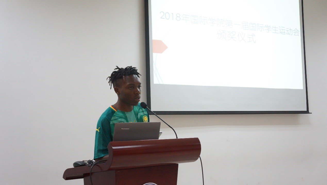 运动会颁奖仪式在学院317室举行,为期半个月的运动会结束了,国际学生们饱含热情地参加了颁奖仪式。从他们脸上灿烂的笑容中,不难看出大家对本次运动会全情的投入和享受。在颁奖仪式上,国际学生会主席阿汤(厄立特里亚籍)和优秀参赛选手维安(喀麦隆籍)发表感言,他们表示,运动没有国界,这次运动会是国际学生在学校学习生活中珍贵的回忆。