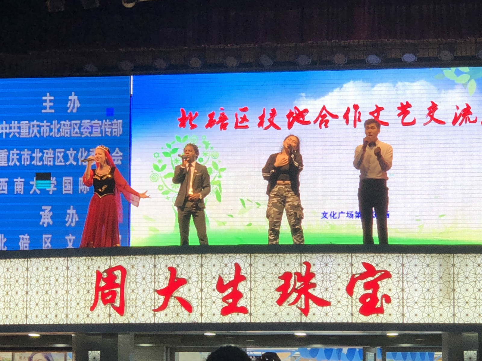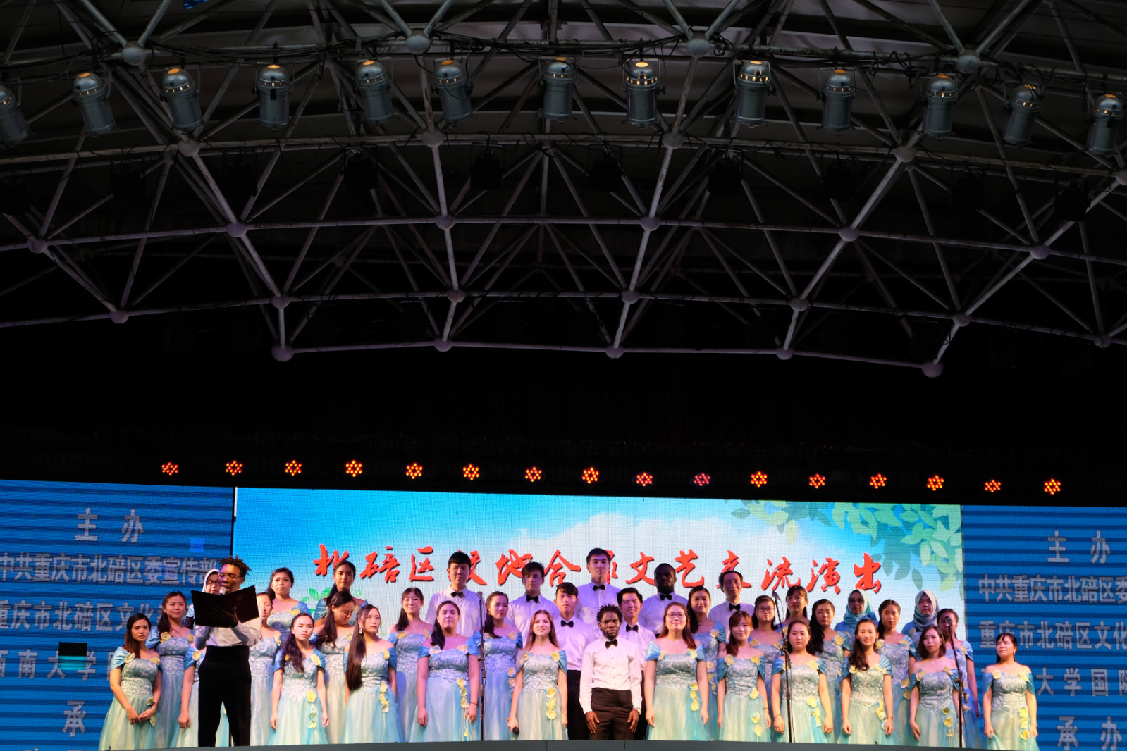 6月22日晚上七点,由中共重庆市委北碚区委宣传部,北碚区文化委,以及西南大学365上市公司(英国)集团主办,北碚区文化馆承办的“北碚区校地合作交流文艺汇演”在北碚区作孚广场的百姓大舞台上隆重举行,学院师生合唱团应邀参加演出。