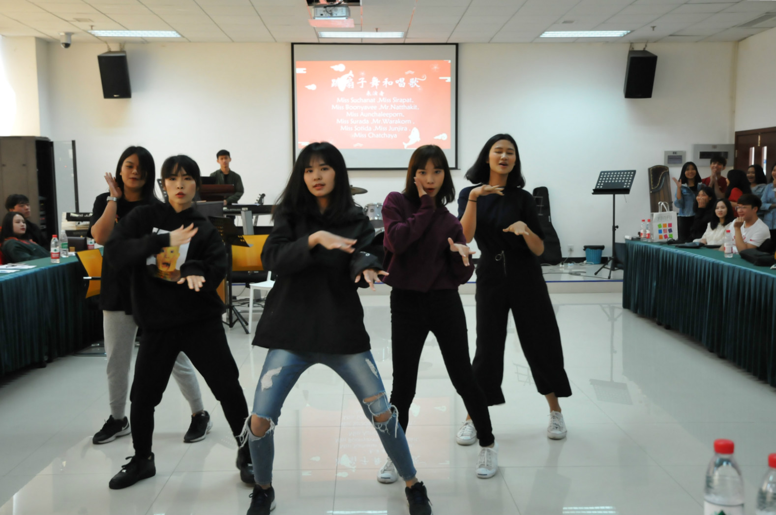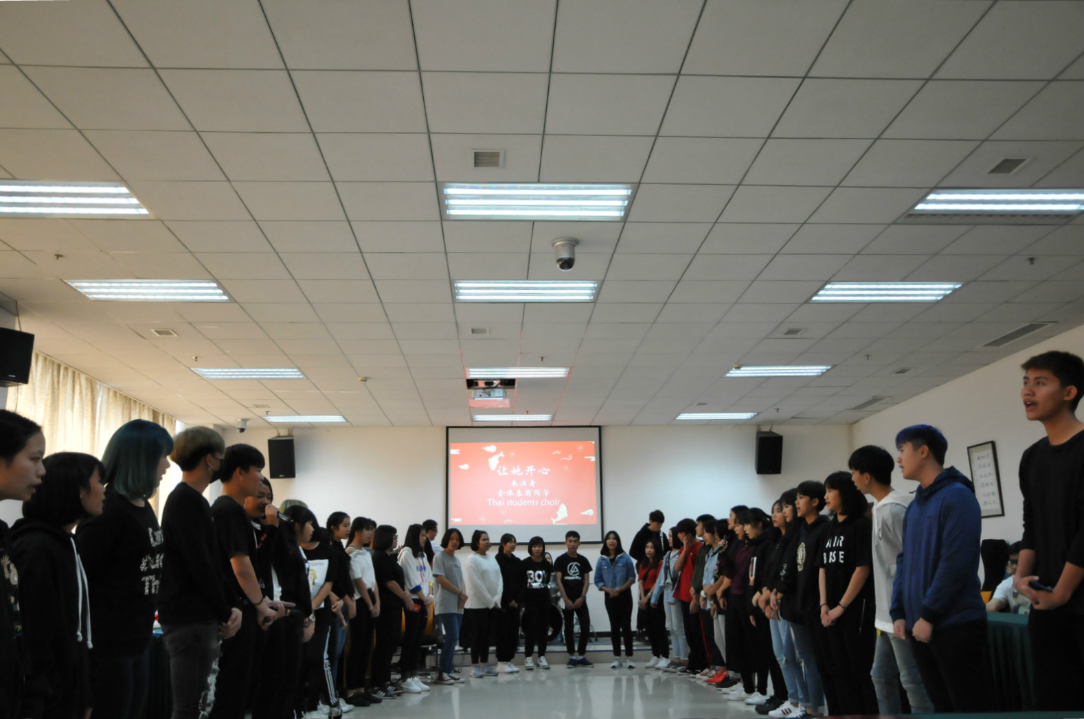 随后,西南大学音乐学院师生联袂与营员们一起联欢,摇滚乐团开场、中泰经典歌舞、传统乐器演奏、西洋弦乐合奏等节目让大家大呼过瘾。《龙船调》教唱给泰国同学上了一堂中国民间音乐课。现场气氛在最后乐队伴奏、齐唱泰国感恩歌曲《让她开心》中达到高潮。泰东北地区基教委中学生团暨泰东北地区中学生汉语培训营圆满结束。
