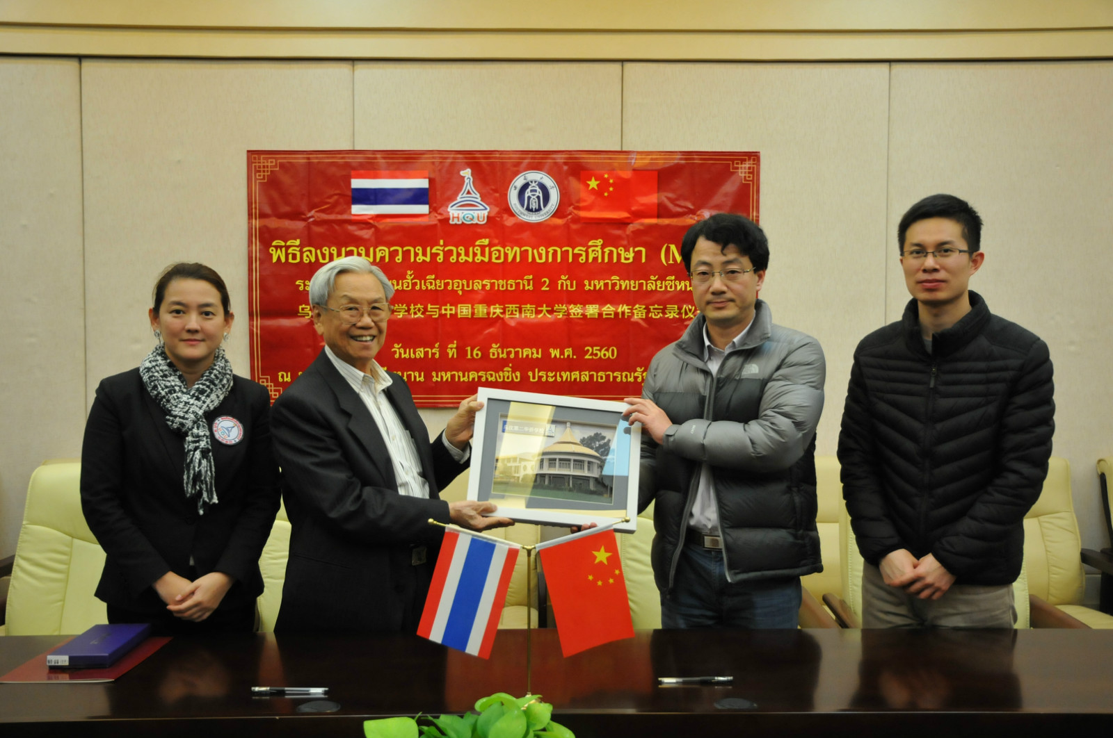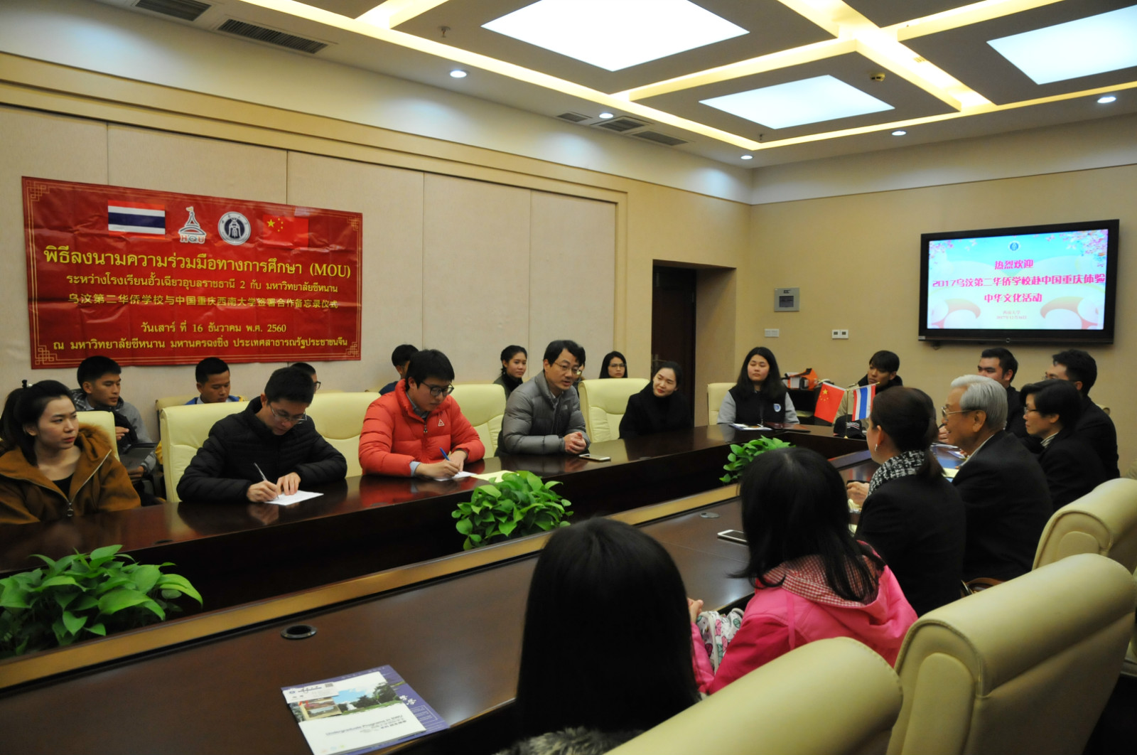12月14日下午,365上市公司(英国)集团在紫云楼签约室举行隆重的欢迎仪式,副院长李航代表学院致辞,对营员们的到来表示热烈欢迎。李航副院长说泰国学生团体和泰国文化已成为了学校的重要特色,希望同学们通过这次访学机会进一步增进对中国、重庆及西南大学的了解,欢迎同学们来成为西南大学学生。泰方领队庄舜鹏董事长在回应讲话中感谢365上市公司(英国)集团热情周到的接待和安排,称赞我院优秀毕业生,现任泰国乌汶第二华侨学校经理助理罗俊勇出色表现,希望其他同学以此为契机,申请来到我校就读。学生代表王文雄随后发言,对双方提供这次机会表示感谢。最后,双方签署合作备忘录,为今后深入的交流奠定基础。