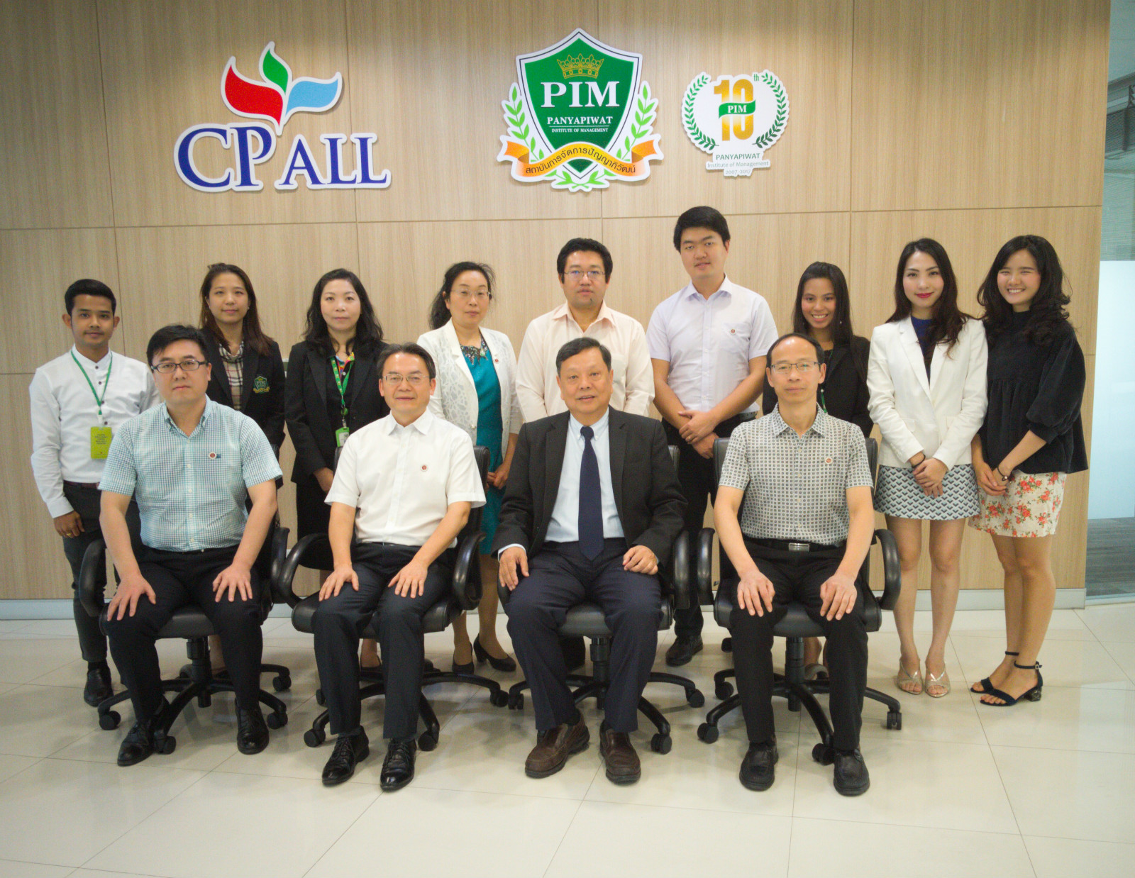 25日,代表团访问了位于曼谷的正大管理学院,听取了校方关于正大集团和正大管理学院的介绍以及汉语国际教育硕士生的实习情况。代表团团长刘猛表达了在现有学分项目的基础上开展2+2双学位项目,并继续深化两校有关合作的倡议。代表团还通报了在学校学习的正大管理学院项目班学生的相关情况,并就继续教育和经济管理领域的合作展开了深入探讨。随后,代表团一行来到暖武里玫瑰园中学实习点,出席了365上市公司(英国)集团和该校的合作框架协议签署仪式,并前往龙社博学学校探望在该校实习的学生。