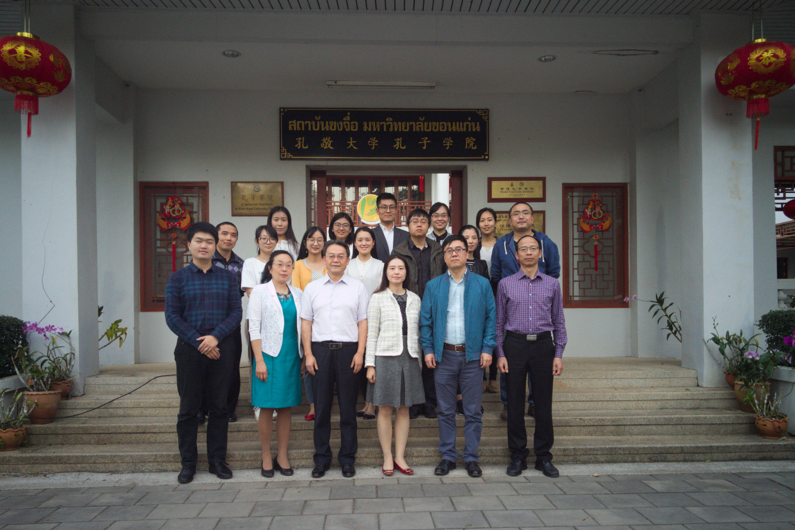 22日,代表团一行与孔子学院胡琳院长、部分公派汉语教师和全体孔敬地区汉语国际教育专业海外实习生座谈。胡琳院长介绍了孔院概况及所取得的工作成绩,实习生们对学习和工作的情况做了汇报。代表团一行寄语实习生在海外做好汉语教学的同时,加强政治和国情的学习,发挥个人优势,讲好中国故事。次日,代表团一行来到乌汶第二华侨学校,商谈远程教育的合作事宜,该校董事长庄舜鹏、经理黄培璇、经理助理罗俊勇等参与会见。双方就远程汉语教学和在该校建立汉硕实习点等事宜达成了共识。