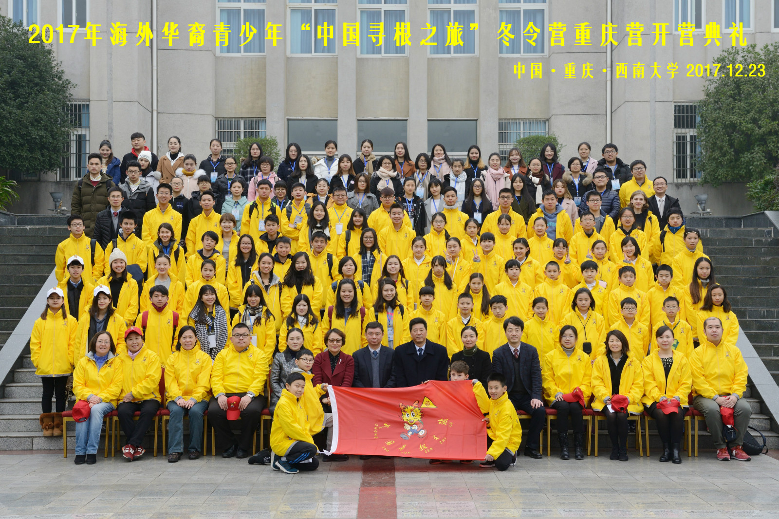 12月23日,由国务院侨务办公室主办,重庆市人民政府外事侨务办公室和学校承办的2017年海外华裔青少年“中国寻根之旅”冬令营重庆营在学校顺利开营。来自马来西亚、日本、美国、加拿大、英国和澳大利亚6国的100名海外华裔青少年将在重庆开展以“同文、连心、传艺、寻根”为主线的“寻根之旅”。