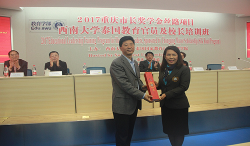 据悉,本次培训成功获批重庆市人民政府外国留学生市长奖学金丝路项目,得到了重庆市人民政府的大力支持。“丝路项目”旨在服务国家“一带一路”倡议,为沿线国家培养高级管理人才。参加此次培训的35位泰国教育官员、中小学及职业学院的校长们来自泰国各地,由泰国教育部选派,将在学校进行为期一个月的交流学习。