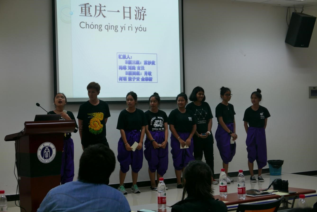 学生代表李仁龙、李雪利随后登台发言,回顾了秋令营的各项活动,自己初到重庆的孤独以及汉语实习教师和泰国志愿者的温暖关怀。简短回顾了短暂而又精彩的两周,同时表达了希望再次回到西南大学深造的愿望。
