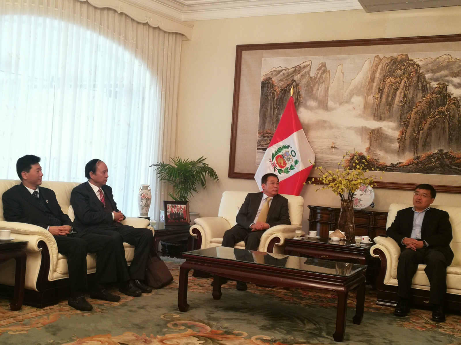 教育展期间,代表团专程赴中国驻秘鲁大使馆拜访贾桂德大使。贾大使详细介绍了秘鲁与中国的渊源和秘鲁的民风国情。指出,中秘两国全面战略伙伴关系进入最好时期,近年来两国教育蓬勃发展,双边教育交流硕果累累,希望本次教育展能进一步促进两国的教育合作,为增进中秘两国人民的友谊做出贡献。