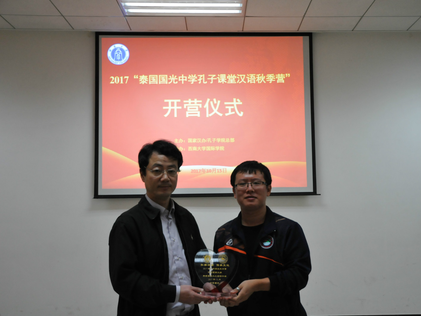 据悉,此次泰国国光中学孔子课堂汉语秋季营由国家汉办资助,我校与泰国国光中学孔子课堂组织,营员为来自泰国的中学生。在为期二周的汉语营期间,营员们将学习汉语言及中国文化课程,参观重庆的人文与自然景观,与我校中国学生及留学生交流互动等。