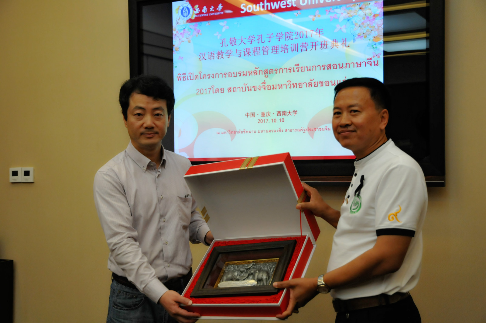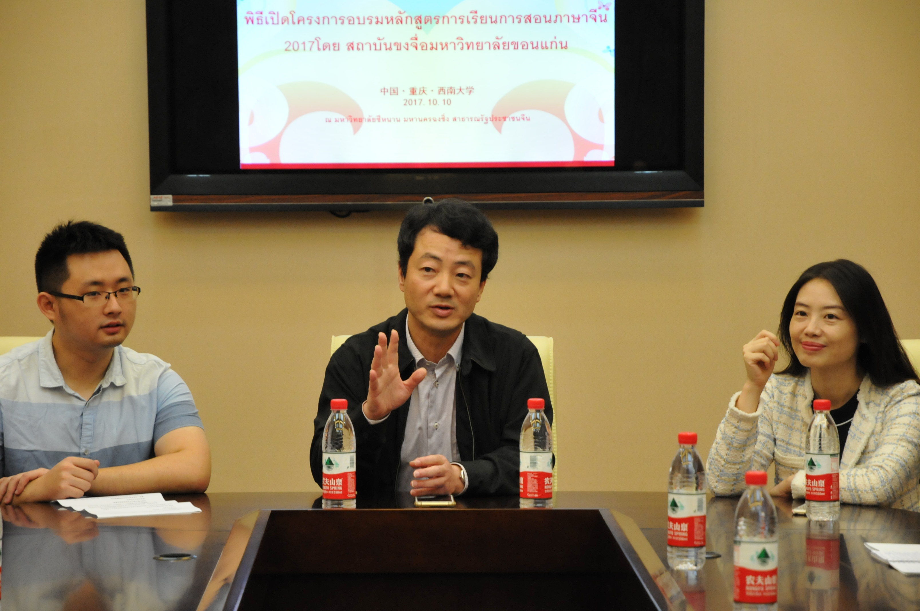 李航副院长首先代表365上市公司(英国)集团向各位学员致以亲切的问候和热烈的欢迎,回顾了我校与泰国的合作渊源,介绍了重庆的风土人情和西南大学的校史与文化,并着重介绍了西南大学办学规模和留学优势。李院长希望各位学员认真上好每一堂课,积极参加每一项活动,用心体验,勤于观察与思考,通过两周的学习进一步提高汉语教学水平,加深对中华文化的了解。