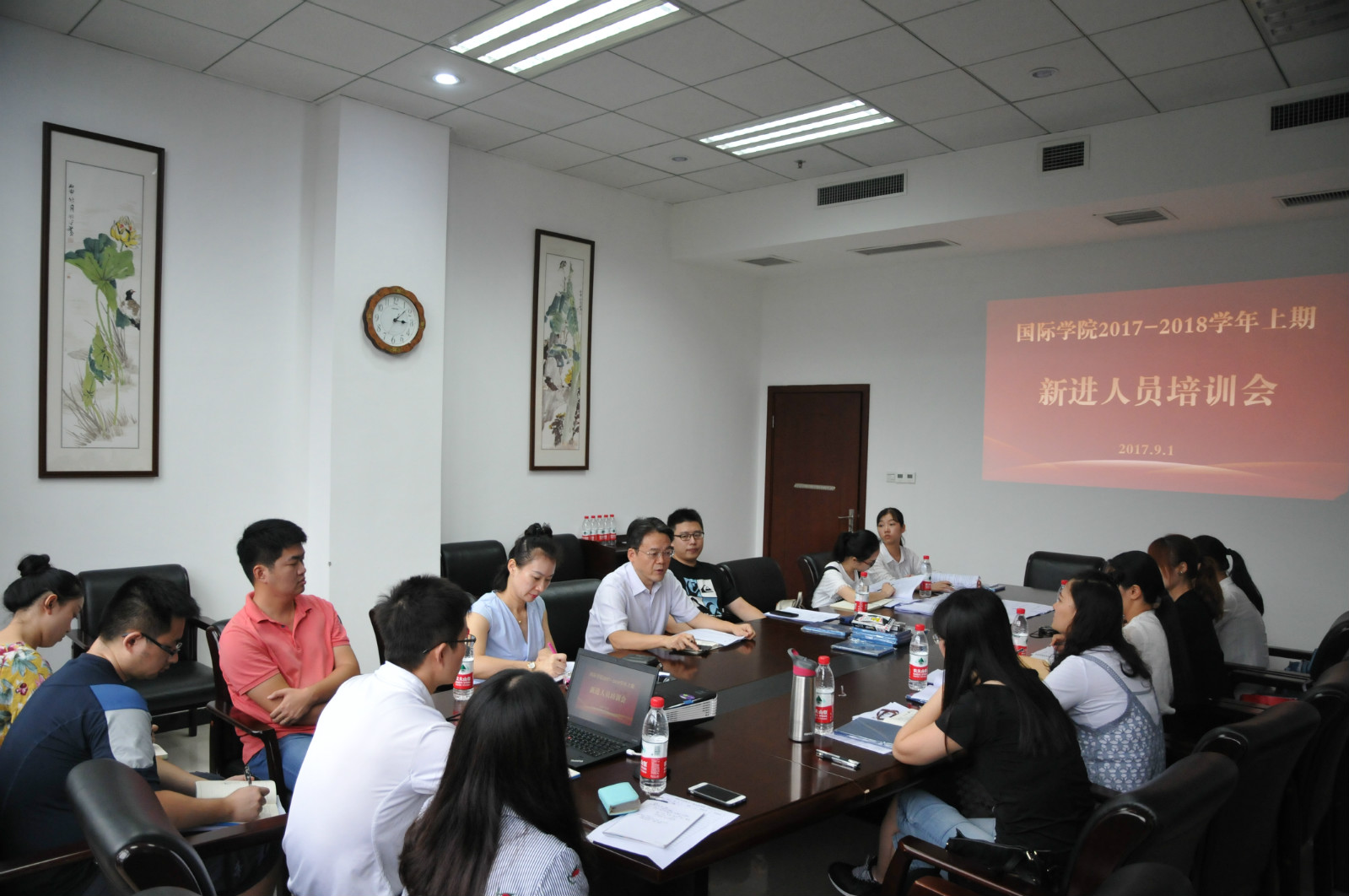 刘猛书记首先介绍学院的基本情况,包括院史、现状、功能定位等,同时对学院党建工作、周五下午学习制度、考勤制度、对外宣传等方面进行点击。指出,“规范管理、提质增效、内涵发展,加快建成留学强国”是国家对来华留学工作提出的新要求,本次培训的目的是为了让新员工提高认识,全面熟悉学院工作,早日成为合格的外事干部和对外汉语教师。