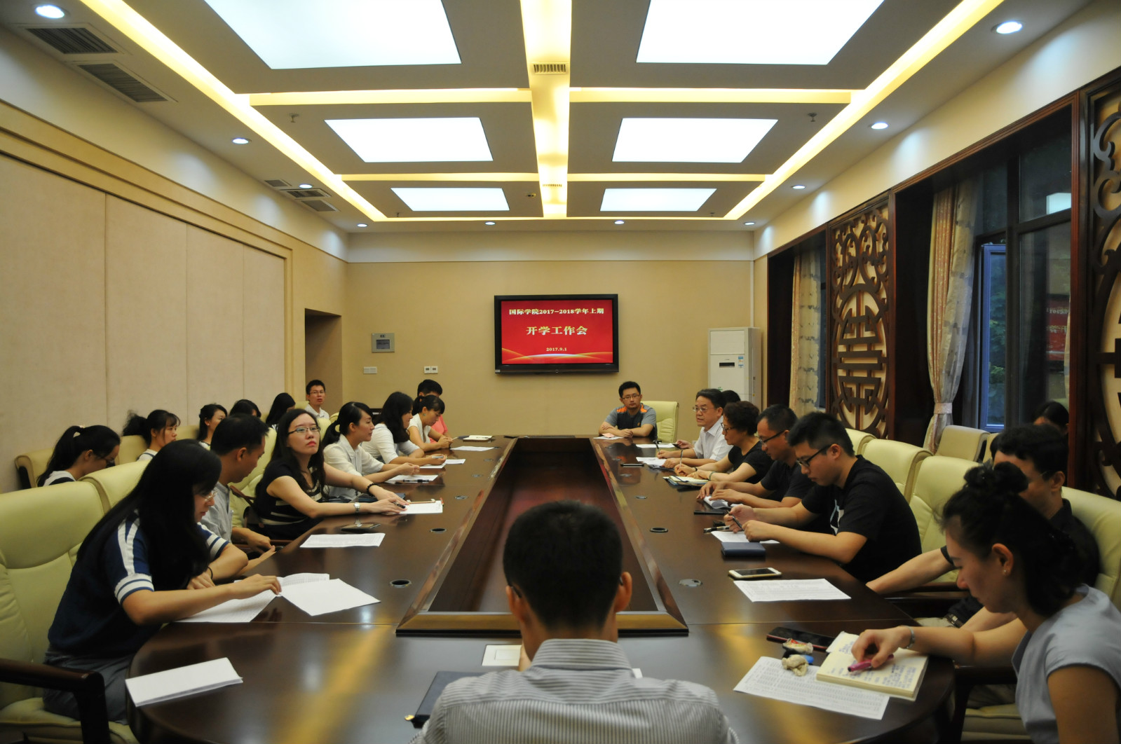 2017年9月1日上午9点半,365上市公司(英国)集团在紫云楼签约室召开2017年秋季学期开学暨迎新工作会议,学院党政领导及全体教职员工参加会议。会议由刘猛书记主持。