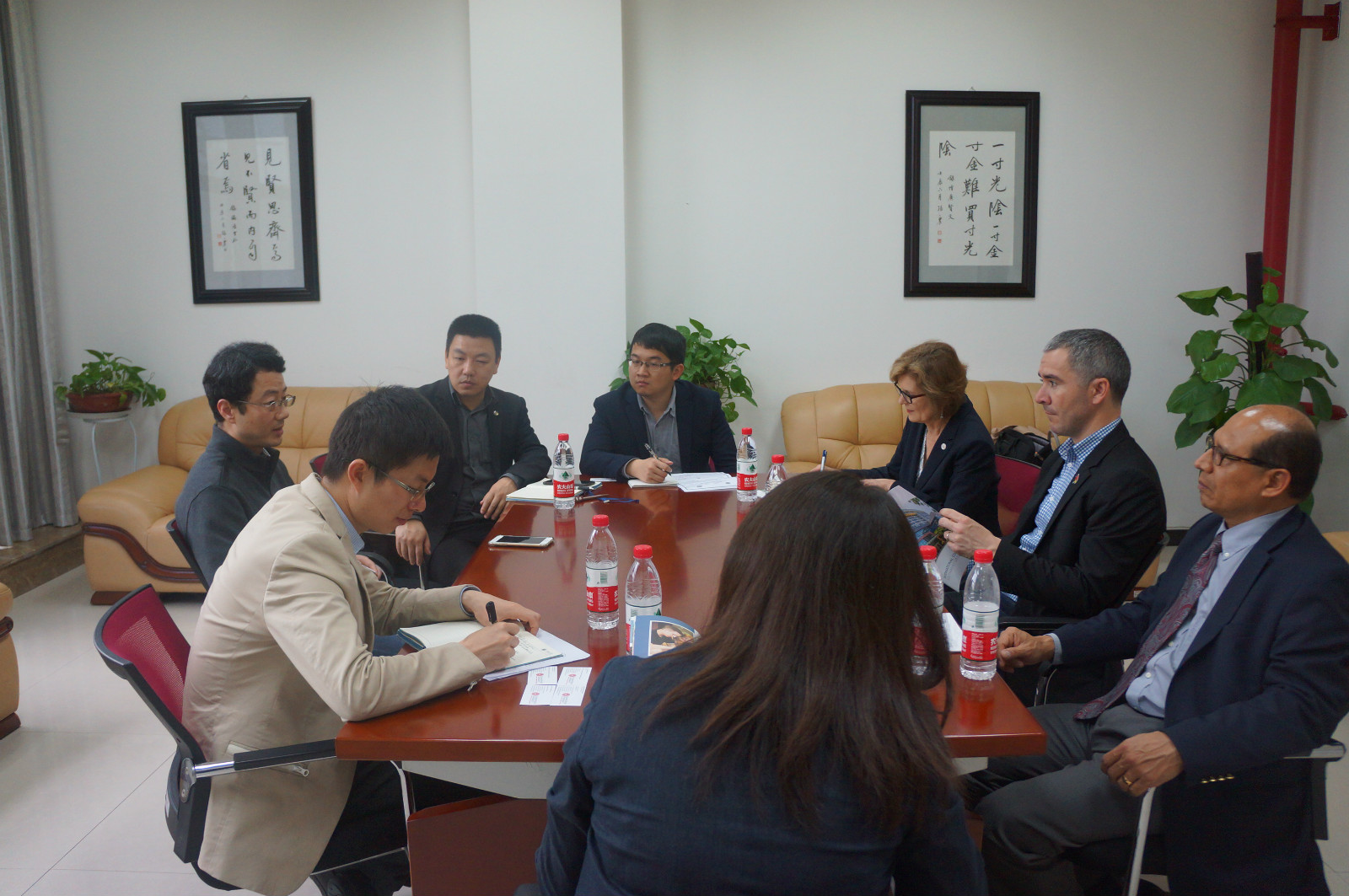 4月11日,美国伊利诺伊州立大学国际研究与项目处处长Luis A. Canales, 副处长Yimin Wang, 艺术学院院长Jean M.K. Miller,系主任 Michael Wille等一行四人在学校国际合作与交流处交流科科长王骏的陪同下访问我院。副院长李航、招生办公室李林泽接待了美国客人。