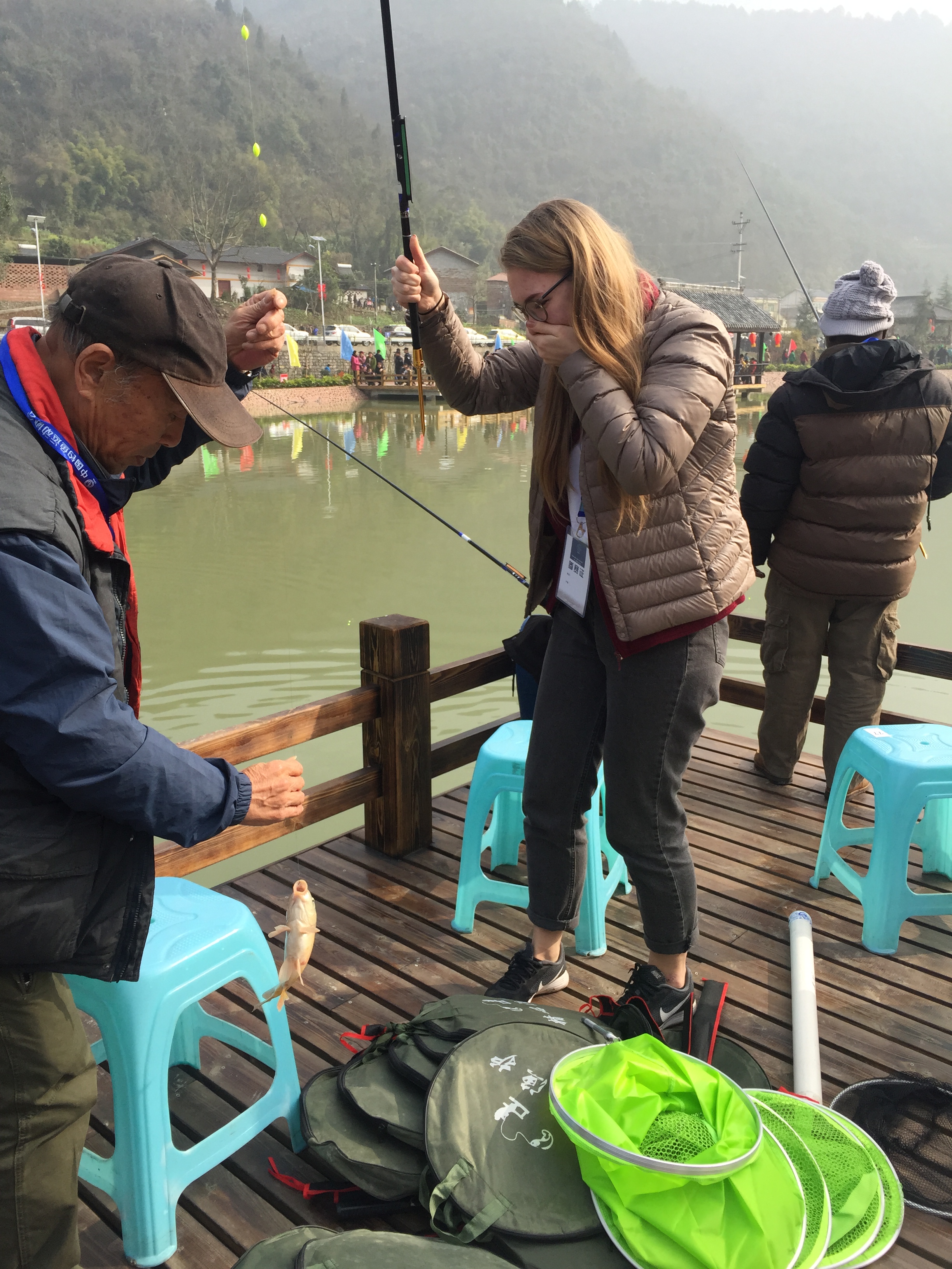 此次钓鱼比赛设在风景优雅、诗意盎然的万盛经开区关坝镇凉风村,参赛者在努力比赛的同时,尽情领略了凉风村的优美景色。留学生们进入国际垂钓赛场后,便在万盛经开区钓鱼协会的专业选手的帮助下,开始摆放鱼竿、整理鱼线、制作饵料......井然有序的做着赛前准备。比赛开始的号令一下,留学生选手们纷纷勾上鱼饵,甩下鱼竿,来自坦桑尼亚的Mohamed旗开得胜,刚把鱼钩放下池塘就钓上来一条大鱼,为选手的比赛开了个好头,其他留学生们也不甘示弱,放下鱼钩,不一小会儿鱼儿就上钩了。钓鱼比赛期间,同学们表现得非常专注。最后在这一场3小时的钓鱼比赛中,来自俄罗斯的Polina获得了冠军,其他留学生们的成绩也非常不错,都获得了现场裁判和组委会的认可。