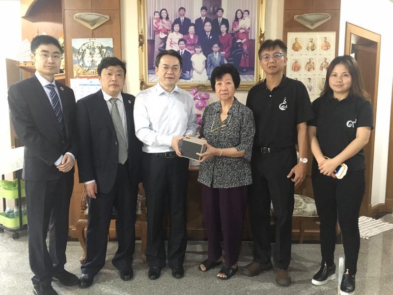 19日,代表团一行慰问了已故教育慈善家、合艾侨团联合会主席方志雄家属,拜访了董里府侨团联合会主席、教育慈善家曾祥明先生。最后,代表团赴董里分别与该府最大的政府学校萨帕拉栔尼中学和该府最大的私立学校布拉纳中学领导商讨短期来华项目,并与布拉纳中学签订合作意向协议书。