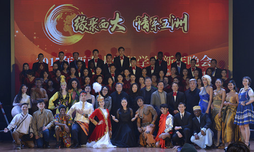 副校长丁忠民教授致开幕词,对晚会的举行表示热烈祝贺,并简要回顾了学校自20世纪50年代开始的留学生教育,肯定了留学生取得的各种成绩。丁校长预祝晚会取得圆满成功,为来宾献上了美好的新年祝福。