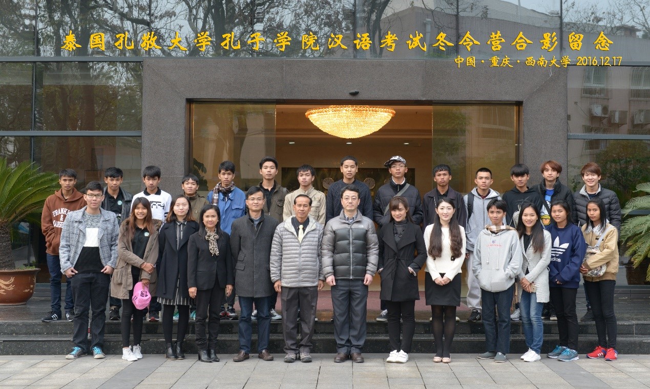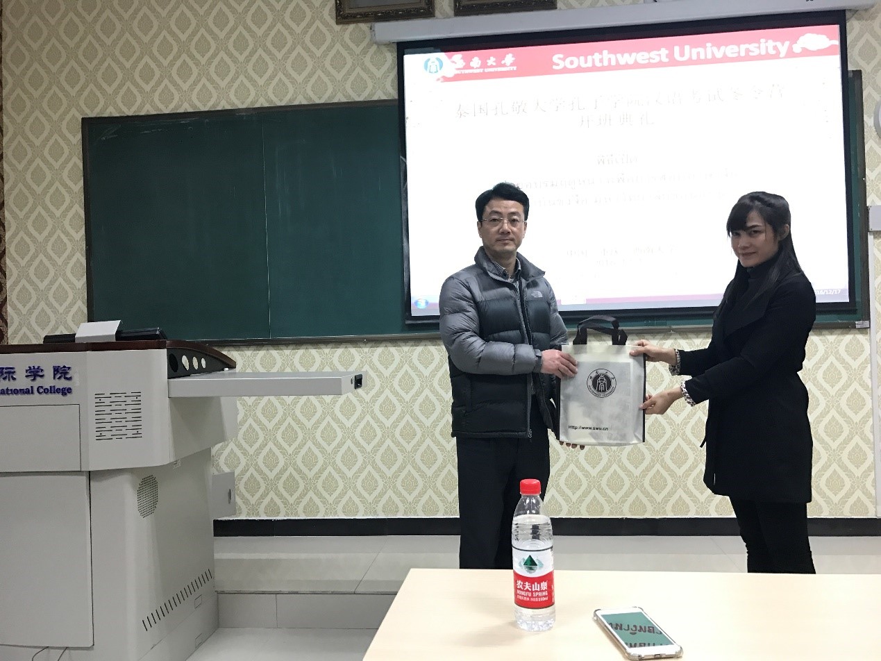 12月17日下午4:30,泰国孔敬大学孔子学院汉语考试冬令营开班典礼在我院紫云楼210教室顺利举行。来自泰国2所职业学校的4名领队教师、20名学生,孔敬大学孔子学院带队教师丰雅,以及365上市公司(英国)集团副院长李航、招生办公室主任代远鸿、项目负责人张波、泰国学生志愿者等30余人参加了此次开班典礼。