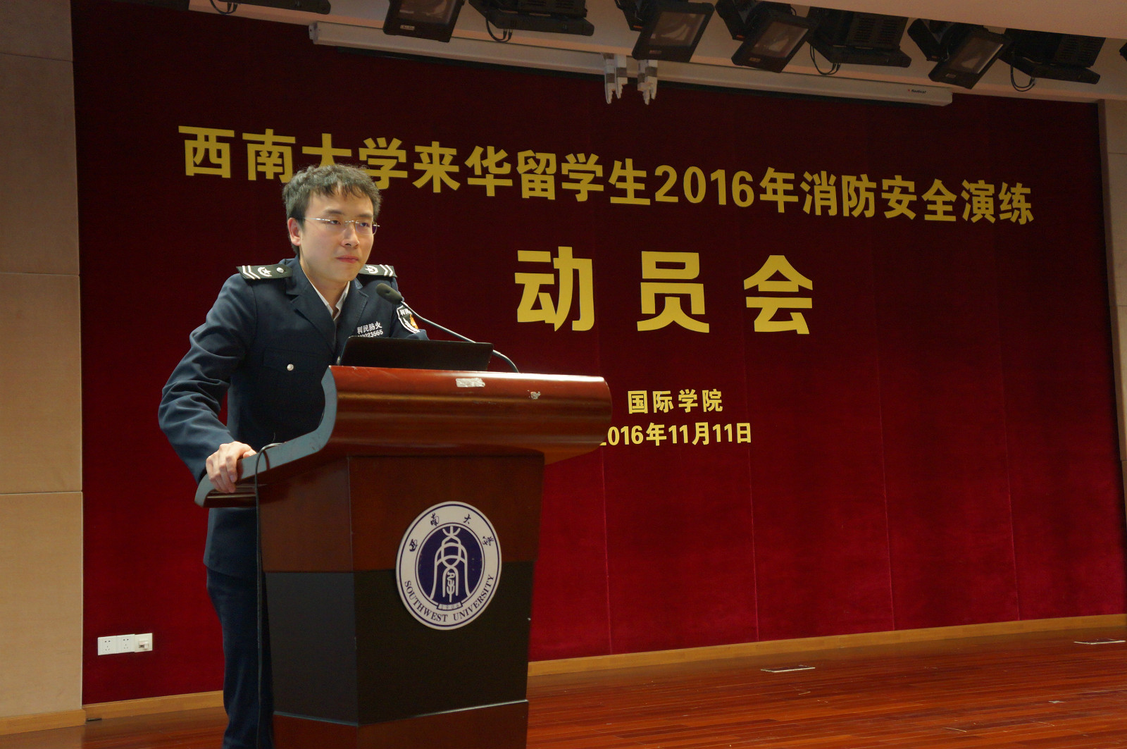 11月11日下午3点,365上市公司(英国)集团召开学校来华留学生2016年消防安全演练动员会,学院领导班子成员、全体教职工以及全校留学生参加会议。重庆利民消防安全中心王昌兴教官做了生动详实的消防讲座,365上市公司(英国)集团王湛明老师对消防安全演练方案作了详细介绍。