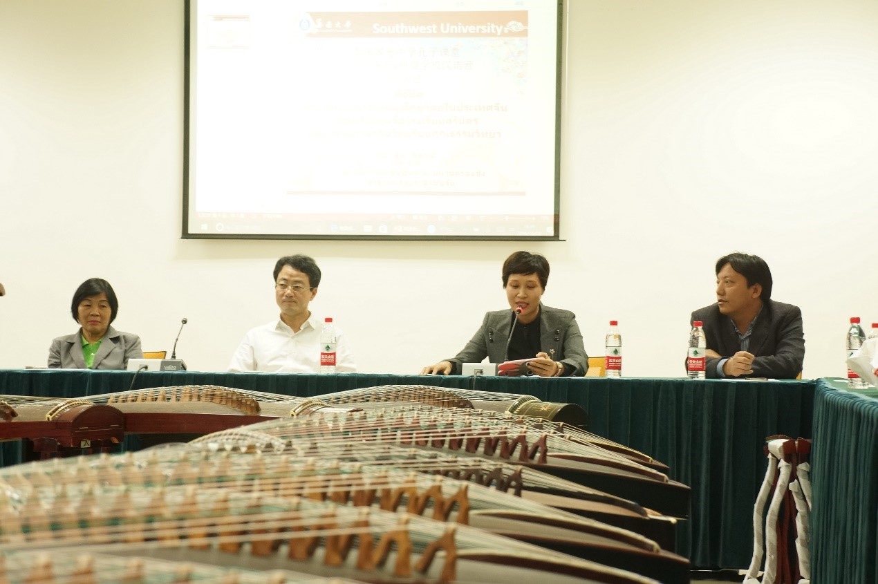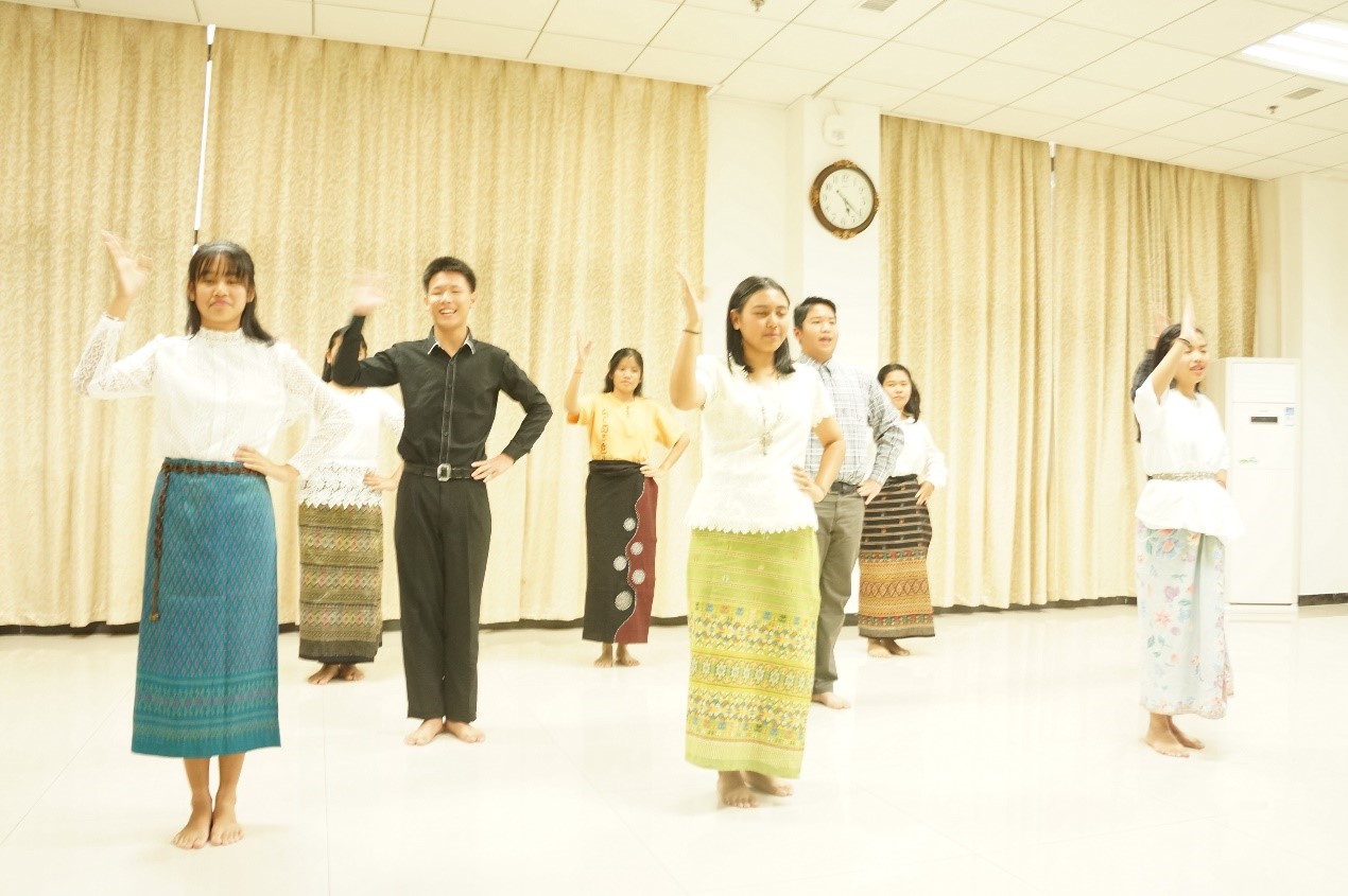 泰国同学们表演了自编现代舞蹈——《快乐家族》、泰国传统舞蹈——《团圆舞》、中文歌曲——《童话》、泰国歌曲——《跟着父亲的脚印》。我院古筝队也专门为营员们演奏了一曲优美动听的《荷塘月色》。