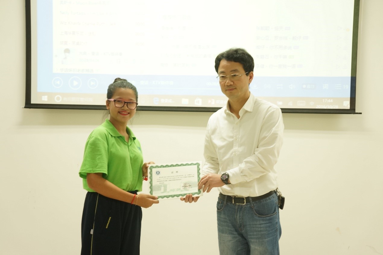 李航副院长对此次活动进行了简要回顾,赞扬了本次营员们不惧困难、团结一致的精神,充分肯定了营员们的学习成果,对此次汉语营教师和相关负责人员所做的工作致以感谢,并向营员们征求宝贵的意见和建议,希望借此进一步改善我院的短期团组接待工作,他同时也向营员们发出诚挚的邀请,期望同学们完成中学学业之后,再次回到西南大学学习深造。