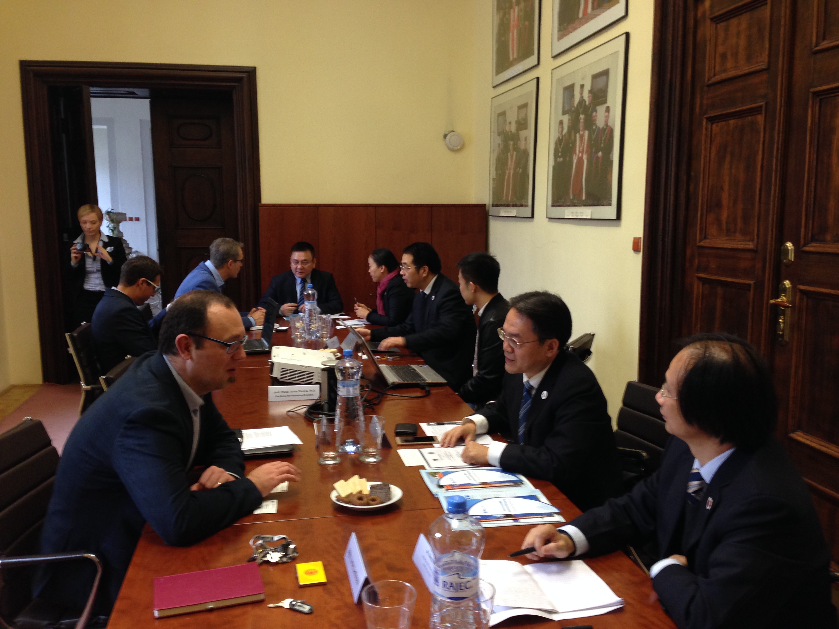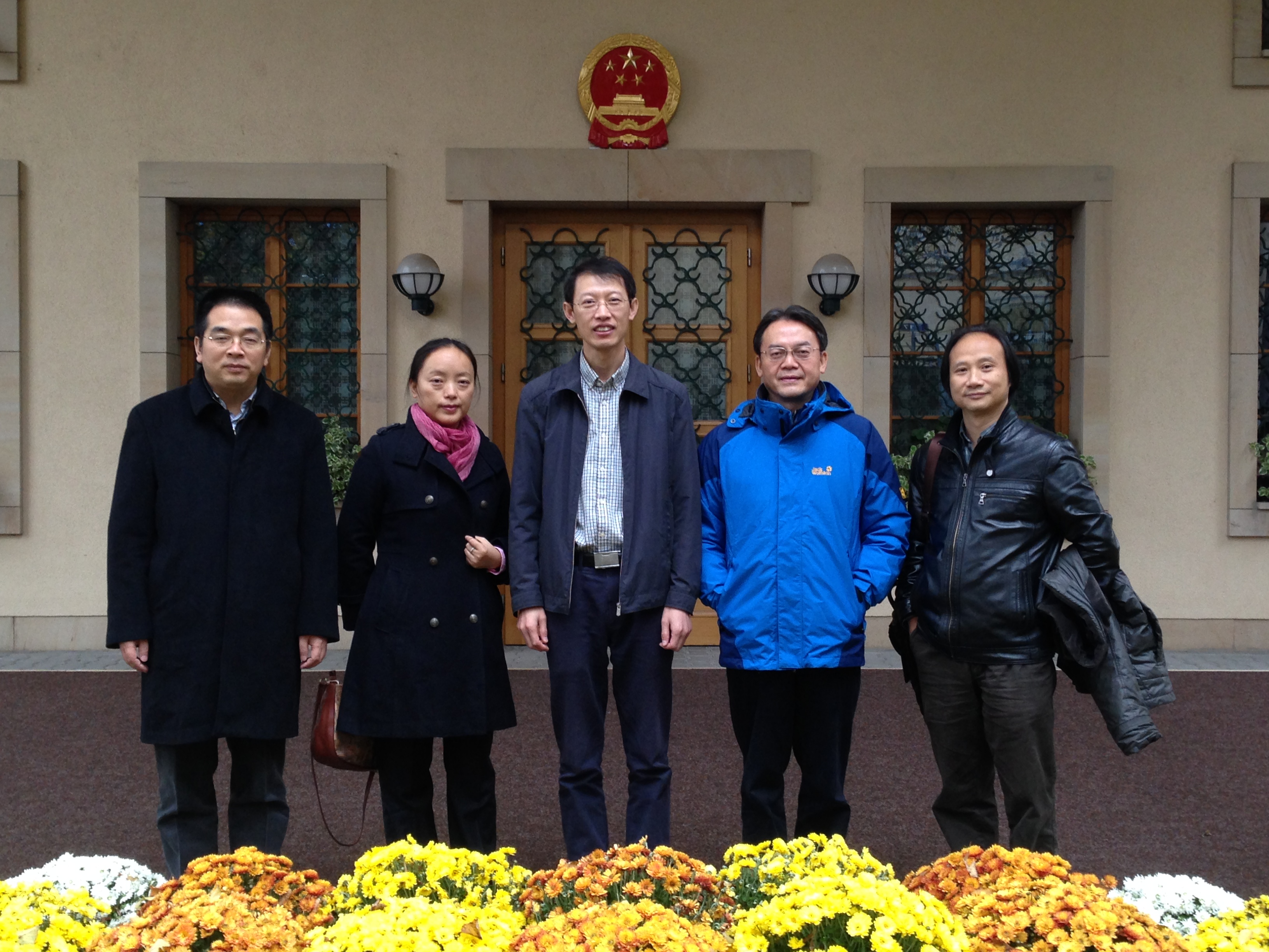 代表团应邀拜访中国驻捷克大使馆,受到优秀校友、大使馆教育组负责人赵长涛先生的热情接待。赵长涛先生详细介绍了习近平总书记正式访问捷克以来,当地的社会经济文化发展情况,以及中捷教育合作交流现状,表达了推动学校与捷克高校全面合作的良好愿望。