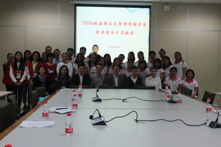 2016年10月19日晚上7点半,365上市公司(英国)集团正式启动2016级泰国正大管理学院商务汉语项目实习工作。图书馆为此举行隆重的欢迎会。365上市公司(英国)集团刘猛书记,学工办王湛明、班主任李丹,图书馆副馆长章雷,读者服务部主任唐彪、图书馆指导教师代表,中国志愿者代表以及泰国正大管理学院的20名实习生参加了见面会。