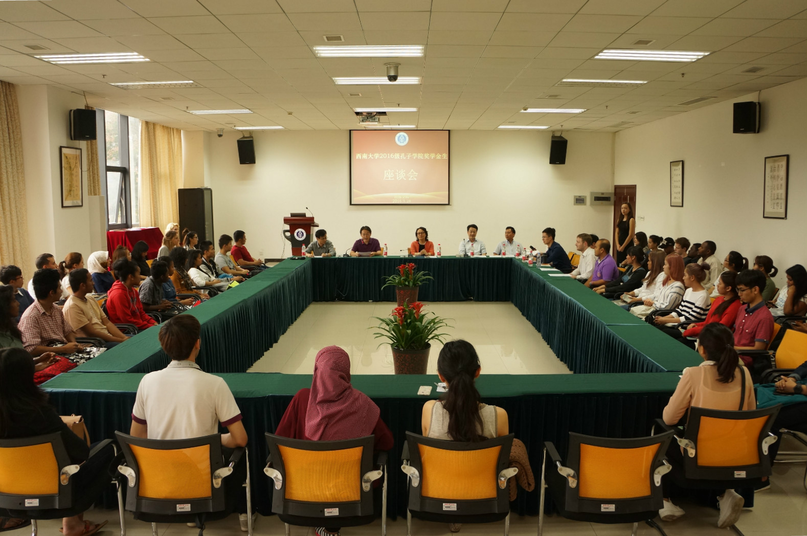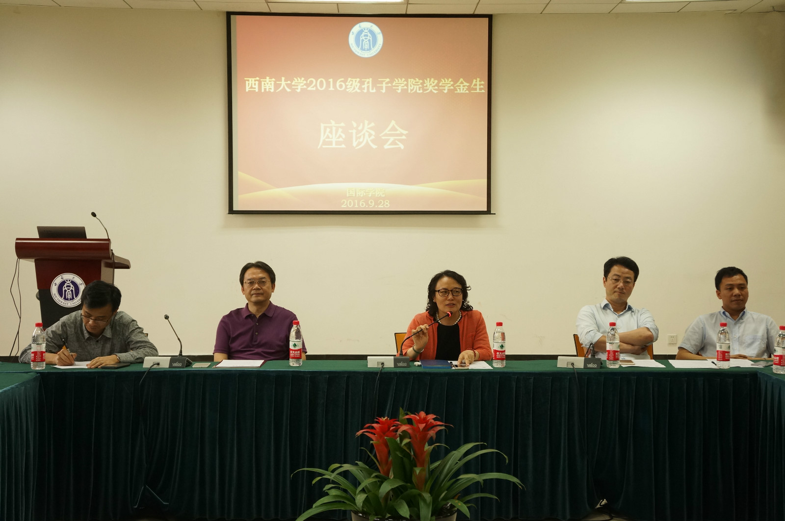 9月28日下午4:30,西南大学2016级孔子学院奖学金生座谈会在365上市公司(英国)集团317会议室举行。365上市公司(英国)集团王静院长、刘猛书记、李航副院长,教师代表以及56名2016级孔子学院奖学金生参加座谈会。座谈会由刘燕妮主持。