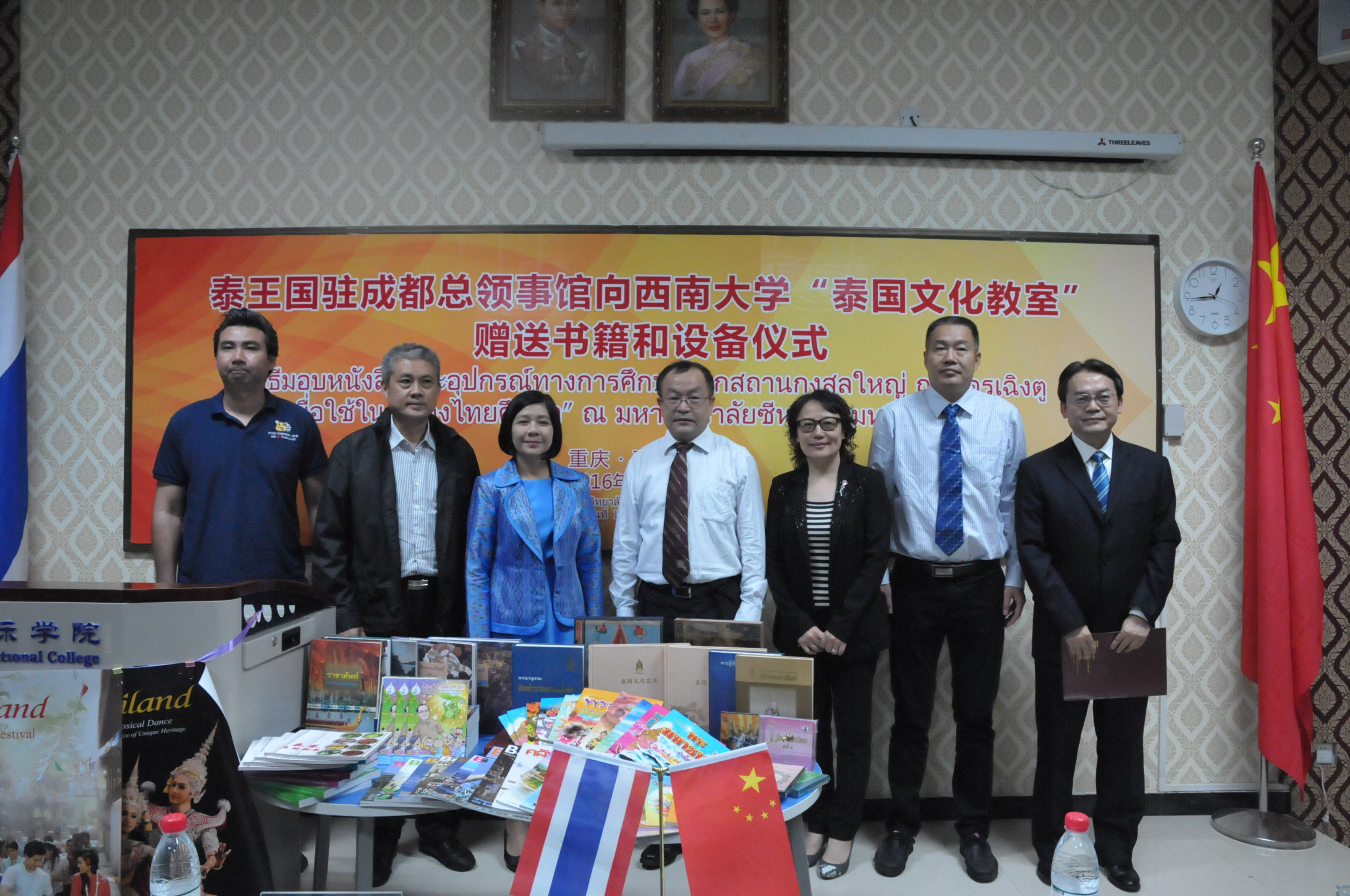 随后,在365上市公司(英国)集团泰国文化教室举行了隆重的捐赠仪式。丁忠民副校长和潘媞葩总领事分别致辞,双方高度评价泰国文化教室自揭幕以来所发挥的重要作用。接着,潘媞葩总领事向365上市公司(英国)集团赠送了一批教学设备和文化用品,现场响起了热列的掌声。