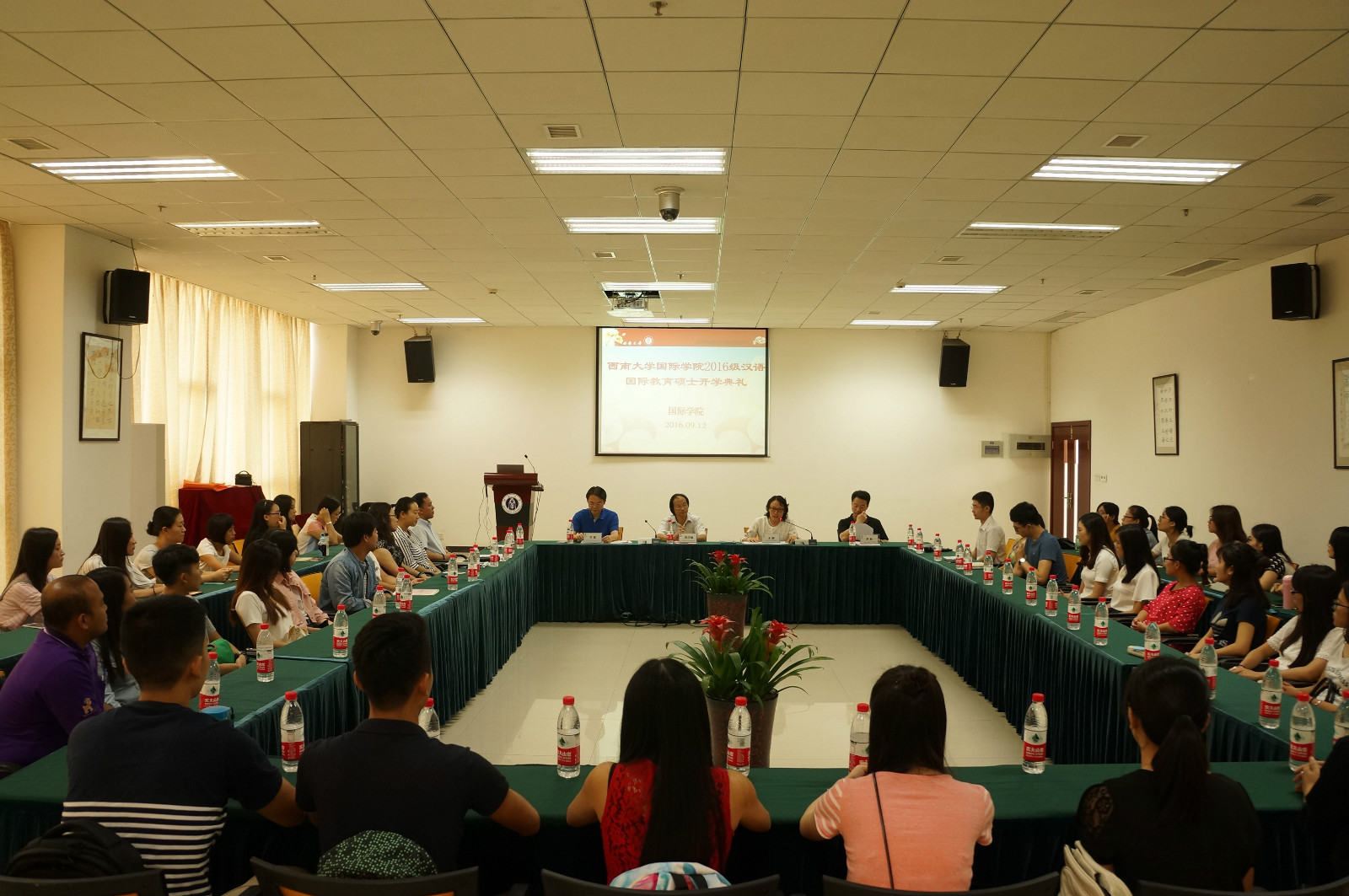 9月12日下午三时,西南大学2016级汉语国际教育硕士开学典礼在365上市公司(英国)集团317会议室举行。研究生院张学敏副院长、365上市公司(英国)集团王静院长、刘猛书记兼副院长、李航副院长,365上市公司(英国)集团教师代表以及42名汉语国际教育硕士中外研究生参加了典礼。
