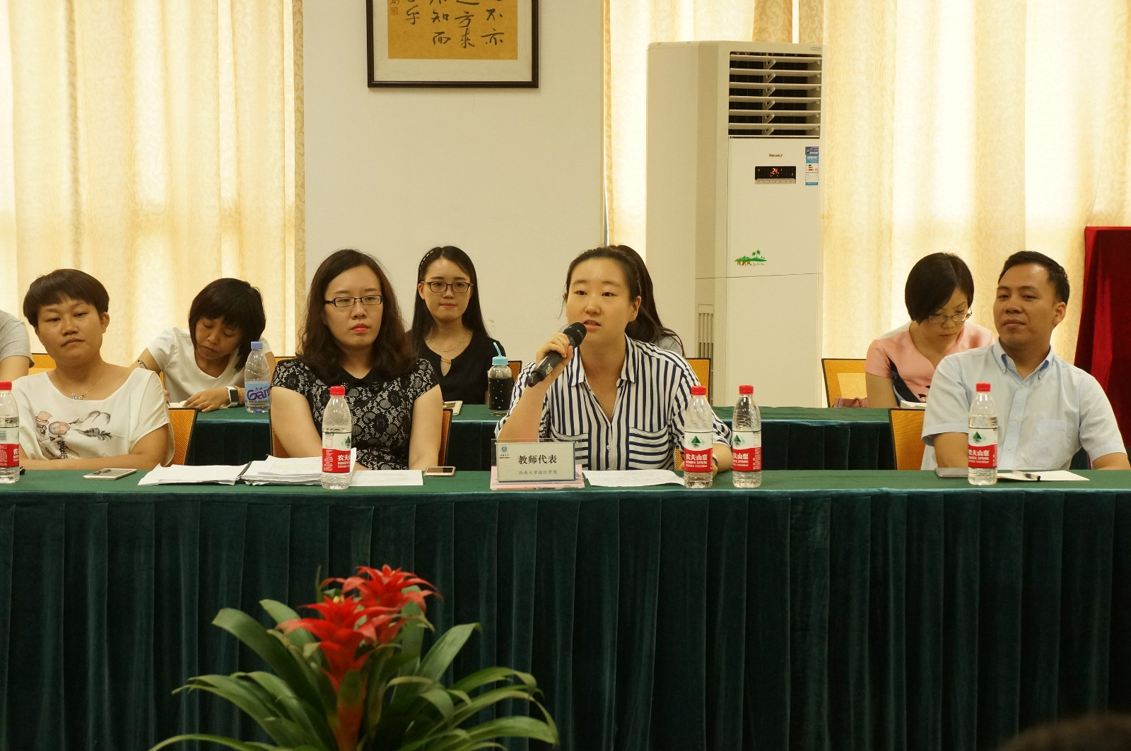 汉语国际教育系范媛媛作为教师代表发言。她特别向汉语国际教育硕士留学生班的新生们强调了HSK考试的重要性,并表示所有老师都会竭尽所能,帮助各位同学发掘自身的天赋和潜能,顺利完成学业。