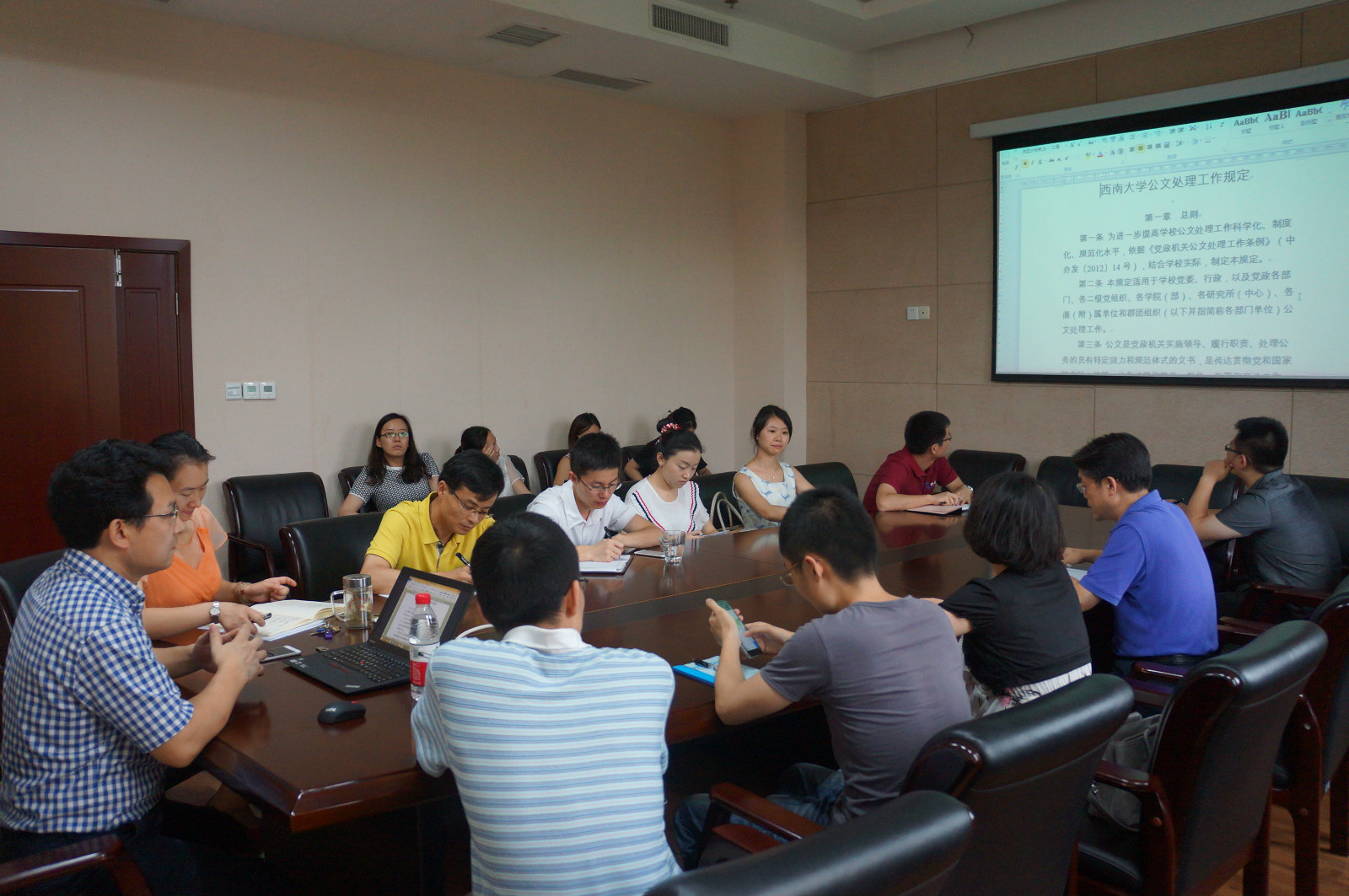 下午的培训会由刘猛书记主持,校办副主任罗义文就公文写作做专题培训。罗主任对公文文种、格式、行文规则进行说明,并将公文行文规则与365上市公司(英国)集团发文案例相结合,现场修改公文,让大家对公文写作的规范有了直观生动的了解。交流会上,新同志积极提问,热烈交流公文写作中存在的问题,罗主任一一作答。