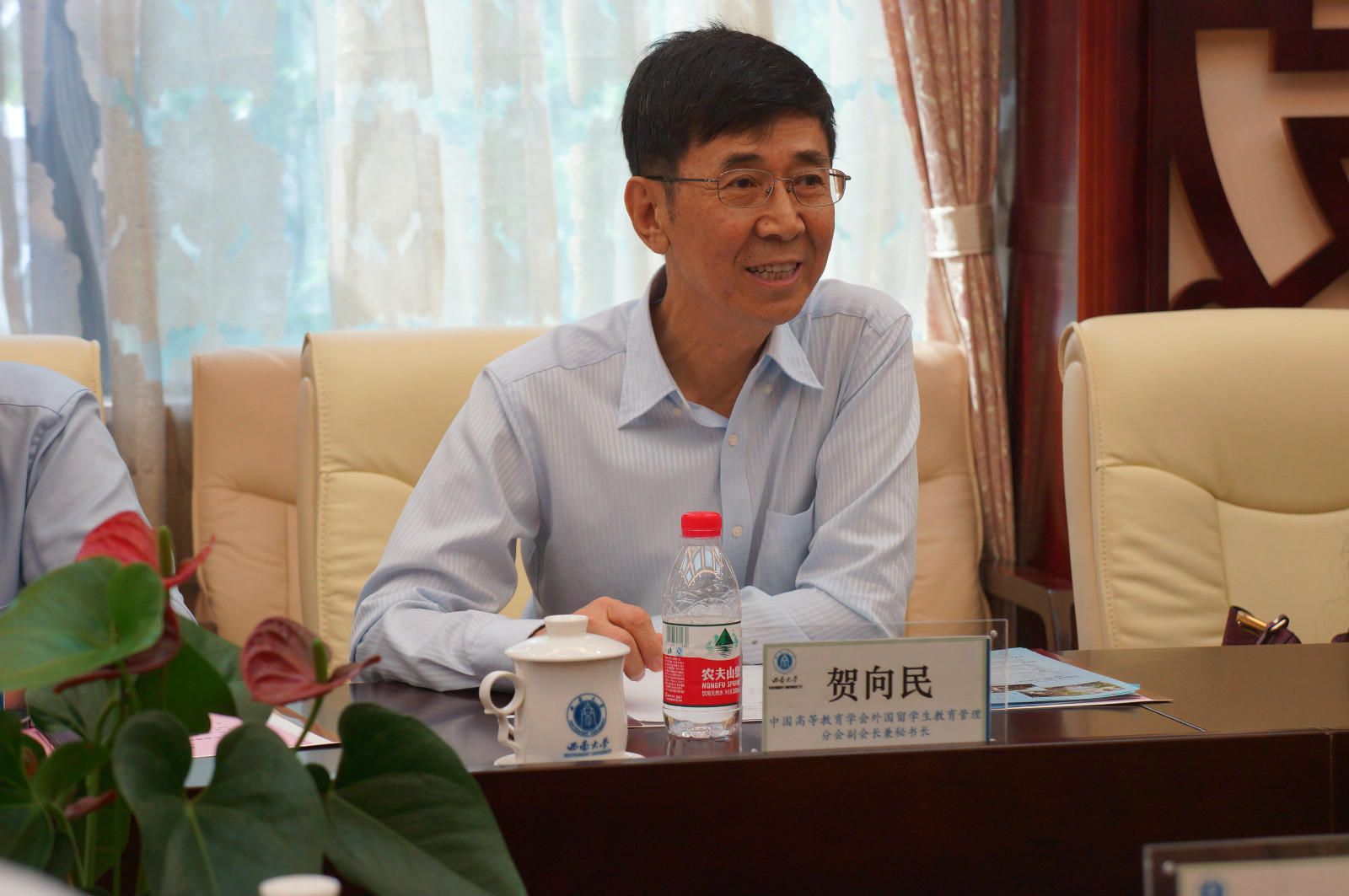 贺向民秘书长讲话。他认为此次部属师大足球邀请赛组织规范,安排合理,为6所师大的交流建立了一个良好的平台。他简要分析了2015年的留学生数据并提出需要注意的几点问题,重点强调了全英文专业建设。他认为教育的根本还是在于教育质量。他指出,留学生在西南大学的学习和生活体验很好,认同感和幸福感很强,有关经验值得宣传和推广。