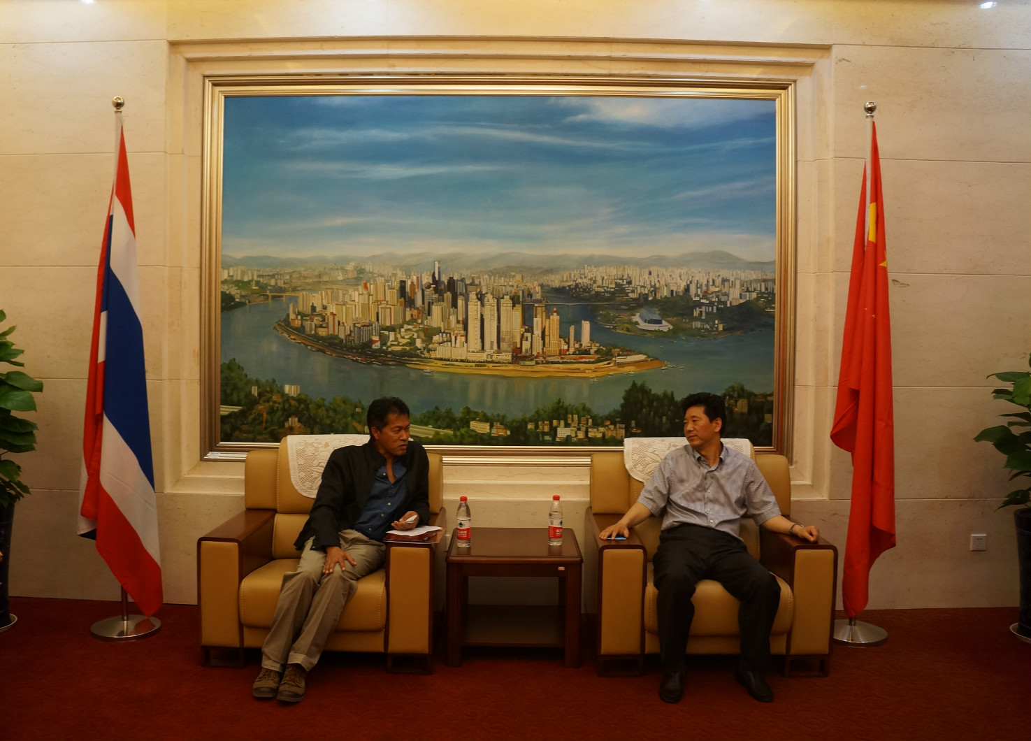 靳副校长热烈欢迎贵宾来访,并表示,西南大学长期以来与泰国保持着良好的合作与互动,与合艾市政、商、学各界的频繁交流将确保双方教育合作共赢。SUMRIT BOONRAT副市长表示,希望西南大学能够一如既往地支持泰国南部的汉语教学、师资培养和中华文化推广,市政府高度重视并支持以合艾国光中学孔子课堂、合艾商业技术学院、泰南华文中学等为平台展开的各项工作。