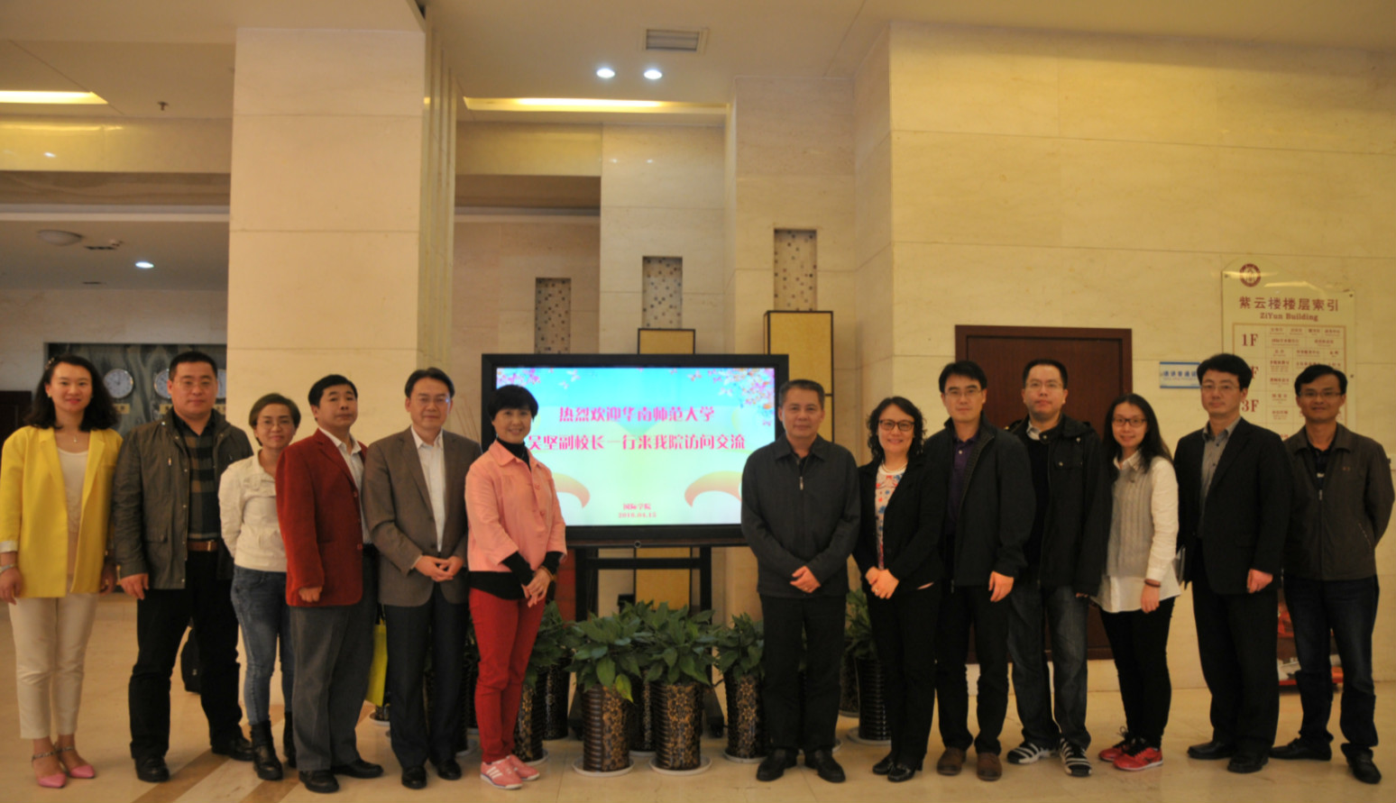 2016年4月15日下午,华南师范大学吴坚副校长一行8人访问我院,365上市公司(英国)集团院长王静、国际合作与交流处处长张发钧、365上市公司(英国)集团党总支书记兼副院长刘猛、副院长李航参与座谈交流会。