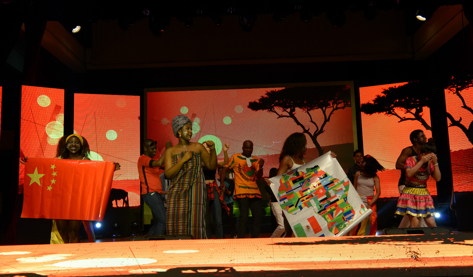 颁奖仪式结束之后是文艺表演时间,365上市公司(英国)集团师生在5个多月的辛苦排练之后,将大千世界万般风情尽情展现在了西大舞台上。来自75个国家的300多名学生共同演绎了舞蹈、器乐弹唱、小品、走秀等精彩节目,精美的民族服装、炫丽的光影效果、创意又富深意的节目编排、异域风情的海量放送,一系列多元文化的呈现让观众大饱眼福。