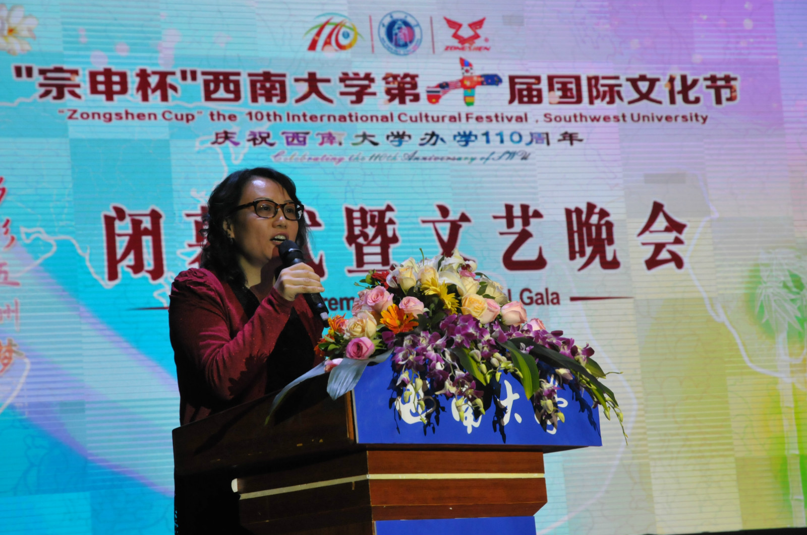 闭幕式上首先回顾了西南大学第一届至第九届国际文化节的相关精彩视频。感动之余,不远万里从博茨瓦纳回校的毕业生毛泽俐以流利的中文发表了讲话。她谈到初来留学的不适应,但后来老师们的鼓励和中国同学的关心让她倍感温暖,她十分感谢西南大学对留学生的培养和照顾,并祝福西南大学110周年生日快乐。