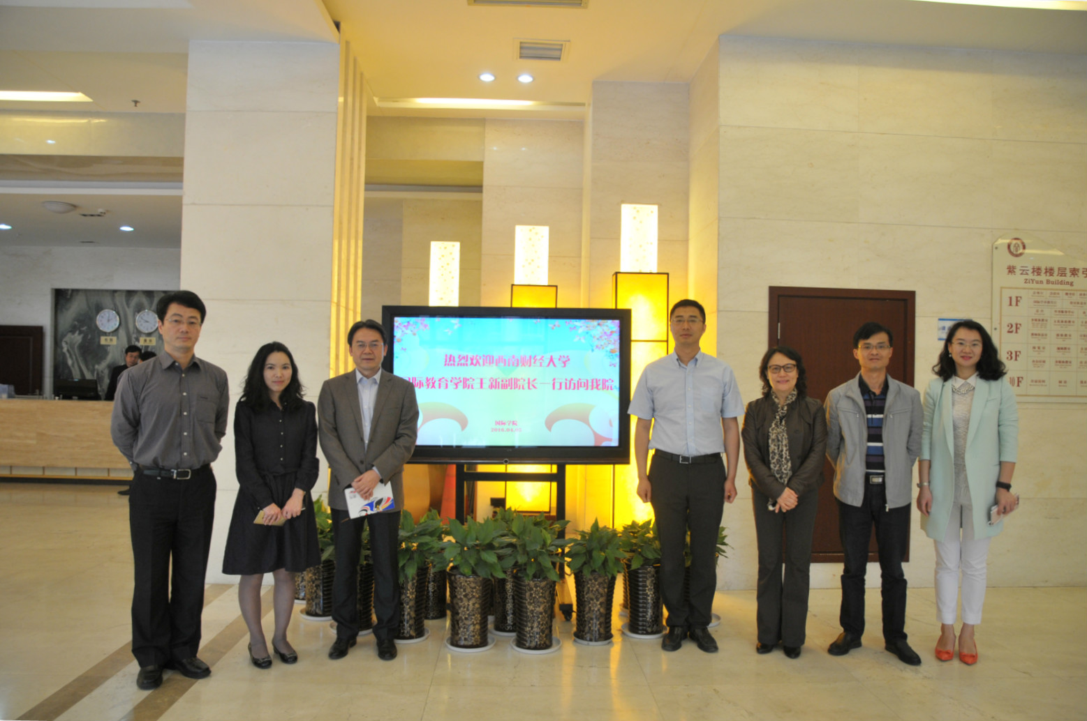 王新副院长一行还应邀参观了留学生综合大楼,双方在紫云楼合影留念。