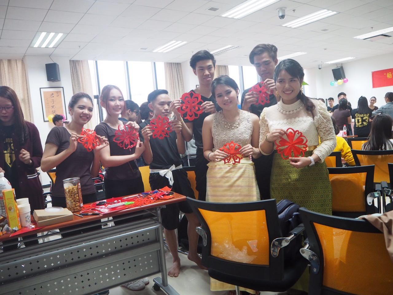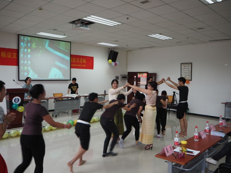 活动环节中,泰国同学带领中国同学玩起了泰国的传统游戏,中国同学则向他们展示了传统剪纸,并现场教泰国同学包饺子。在既饱了眼福又饱了口福后,同学们以合唱泰国正大管理学院院歌圆满的结束了此次主题活动。