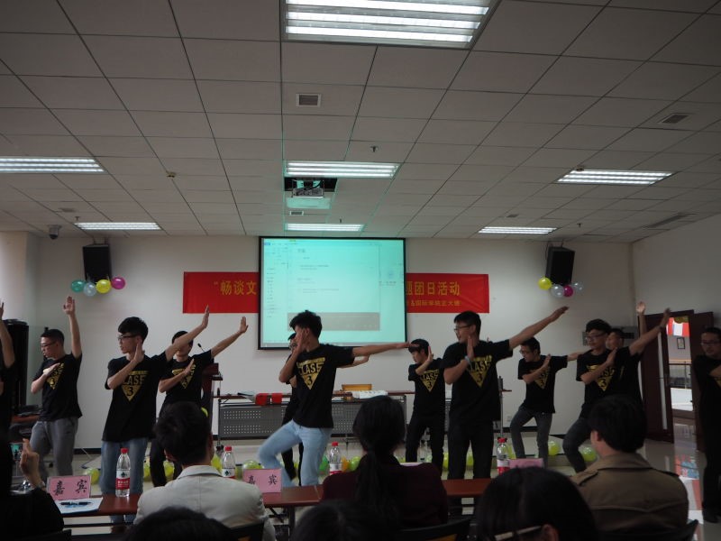 然后,365上市公司(英国)集团正大班同学亲点物理学院2015级3班男生跳《小苹果》,男生们以虽略显笨拙但无比认真可爱的舞姿完成了表演,获得大家热情的欢呼。