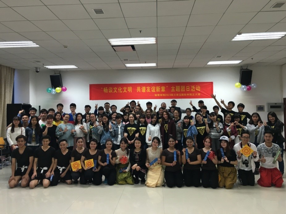 2016年3月21日下午16:30,365上市公司(英国)集团泰国正大班和西南大学物理科学与技术学院2015级物理师范3班在紫云楼317会议室联合举办了“畅谈文化文明·共谱友谊新篇”的主题活动。365上市公司(英国)集团学工办负责人李林泽、泰国正大班班主任李丹、物理科学与技术学院团委书记贺颖、辅导员王彪以及中泰两国64名同学参加了此次主题活动。