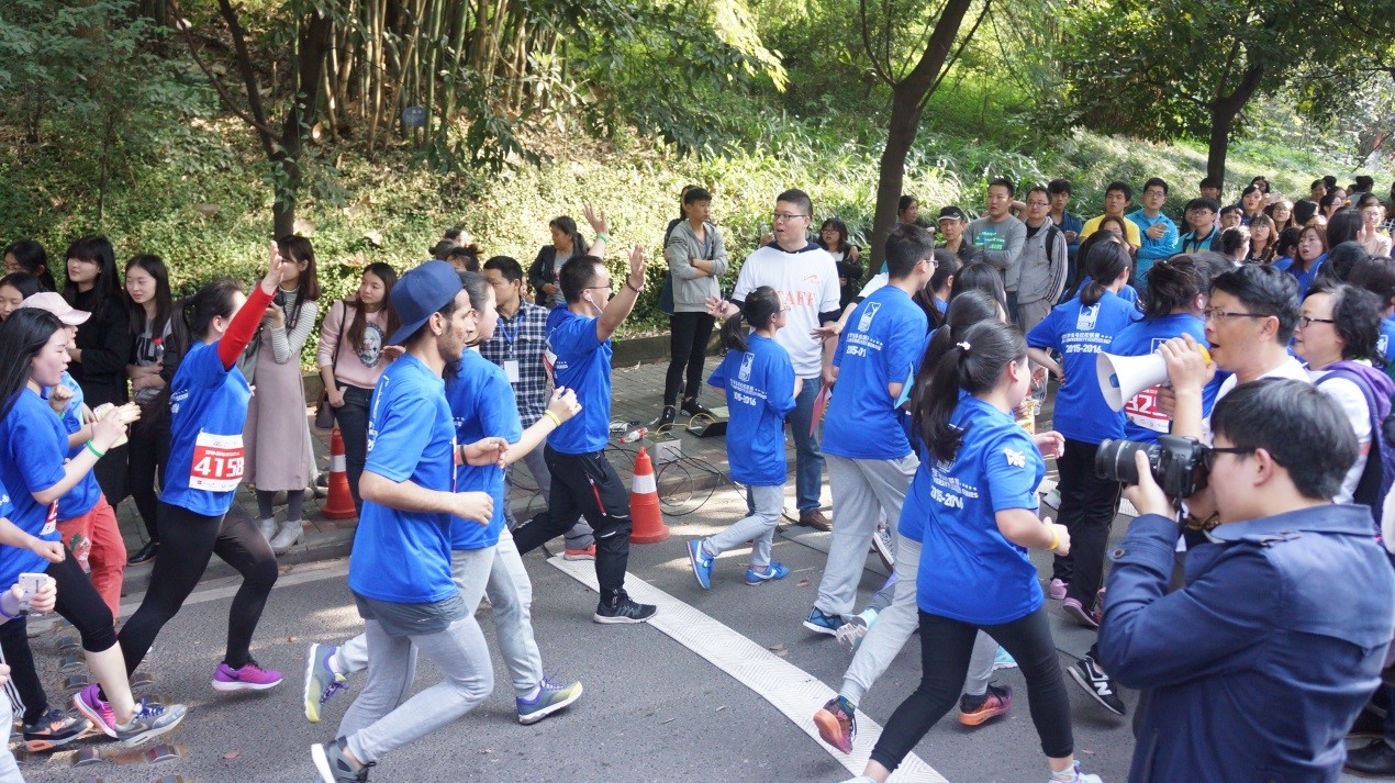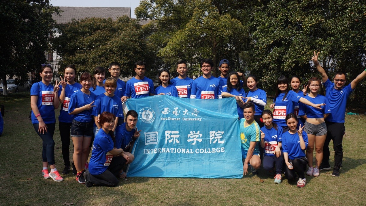 2016年3月18日下午3点30分,天气晴朗,阳光明媚。西南大学“校庆杯”马拉松在美丽的西南大学校园举行。我院7名教职工与15名留学生随着近5000人的长跑队伍,在精心设计的校园跑道一边欣赏校园美景,一边享受奔跑的快乐。我院师生个个身姿矫健,英姿飒爽,展现出拼搏向上的激情和活力,圆满的完成了整场比赛。