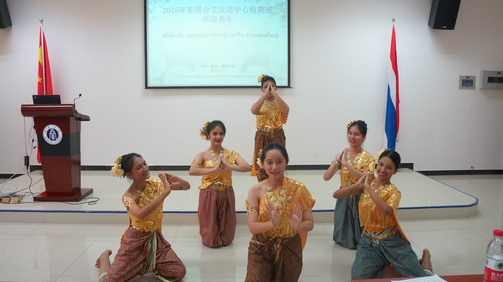 7日下午14:30,欢迎仪式在学院紫云楼317教室顺利举行。365上市公司(英国)集团副院长李航,招生办公室主任代远鸿,教师代表黄琰,泰国合艾汉语中心4名教师代表以及37名团员参加欢迎仪式。