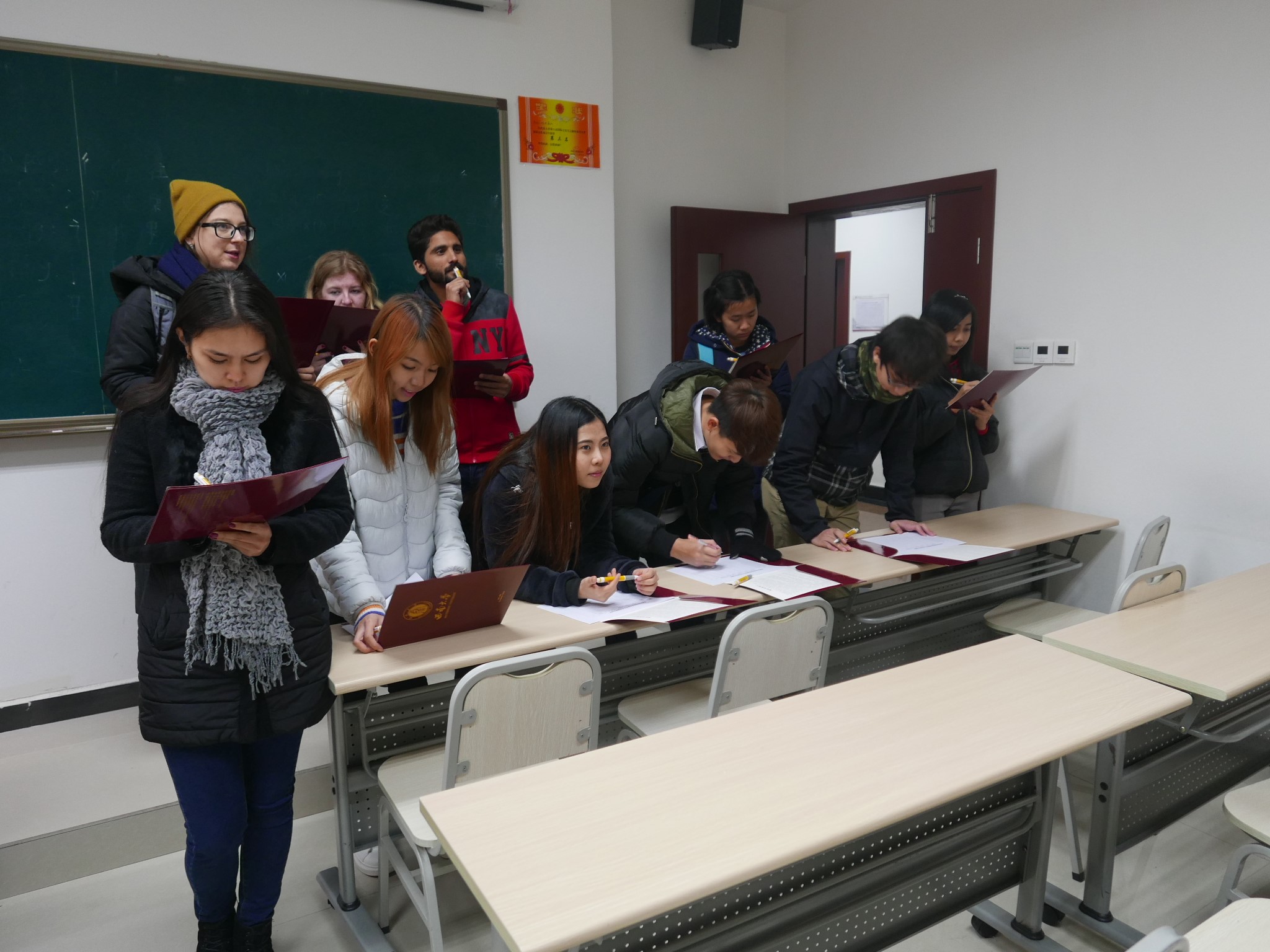 为了加强班级文化建设,增强留学生的班级凝聚力,近日365上市公司(英国)集团组织学院13个留学生班级进行了手抄报比赛,并于12月29日进行了评比。学院教师代表和13名留学生代表组成大众评审团,从主题、内容、版面等方面对各班手抄报进行评分,最后根据得分排名,评出一等奖2个、二等奖4个、三等奖7个(详细获奖情况见后)。