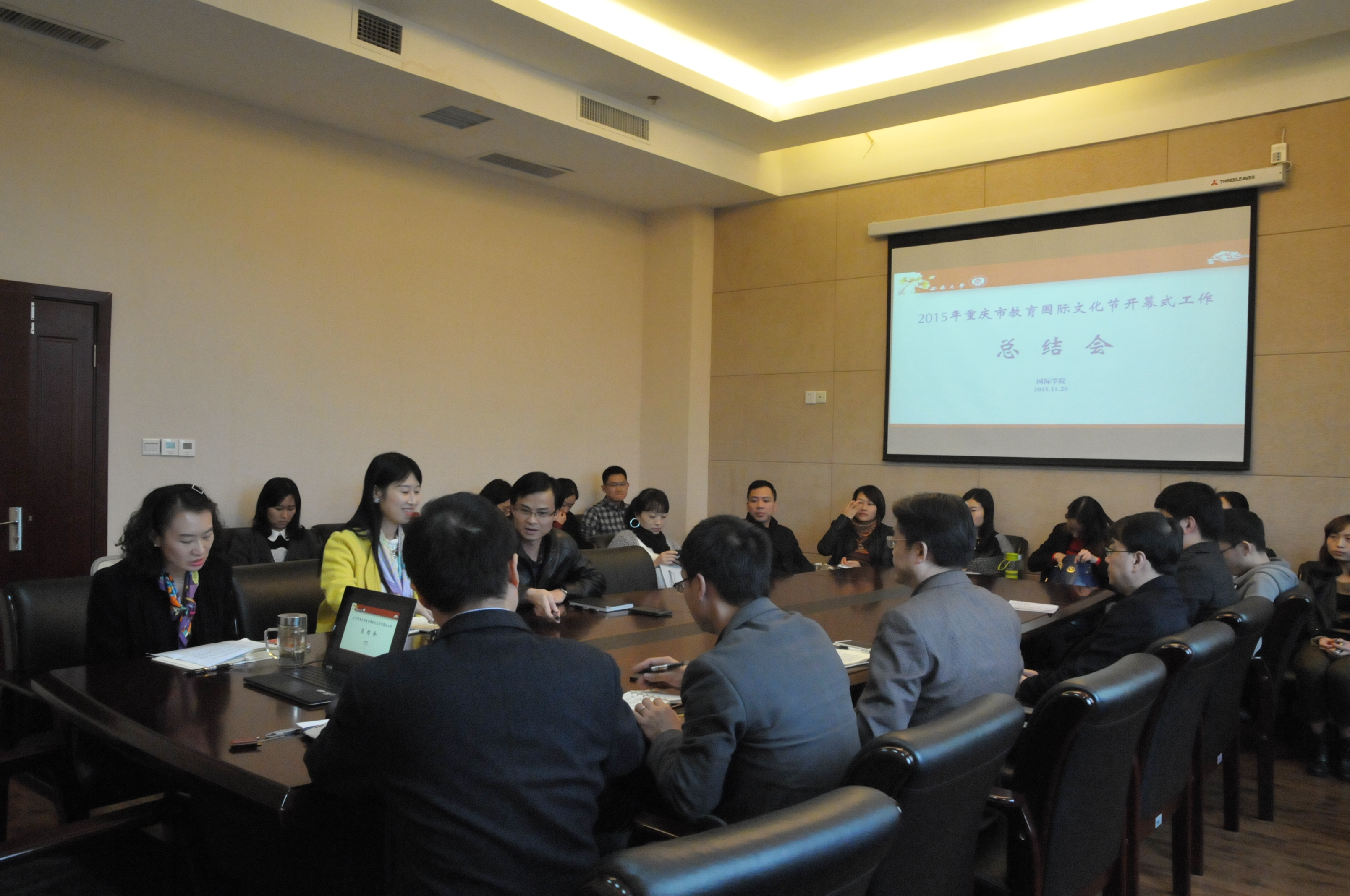 11月20日下午,2015年重庆市教育国际文化节开幕式工作总结会在紫云楼310会议室举行。院长张发钧、副院长张家政及365上市公司(英国)集团全体教职员工参加会议。会议由学院党总支书记兼副院长刘猛主持。