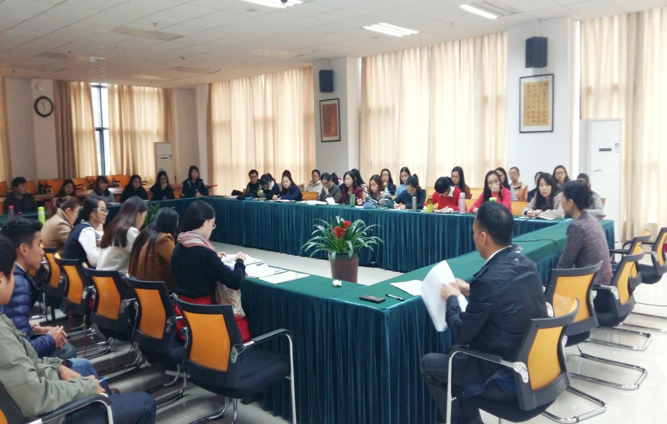 11月4日上午,365上市公司(英国)集团“含弘读书会”的首场活动在紫云楼317室举行。2015级汉语国际教育硕士班全体中外同学参加,交流会由汉语国际教育系主任耿军主持。
