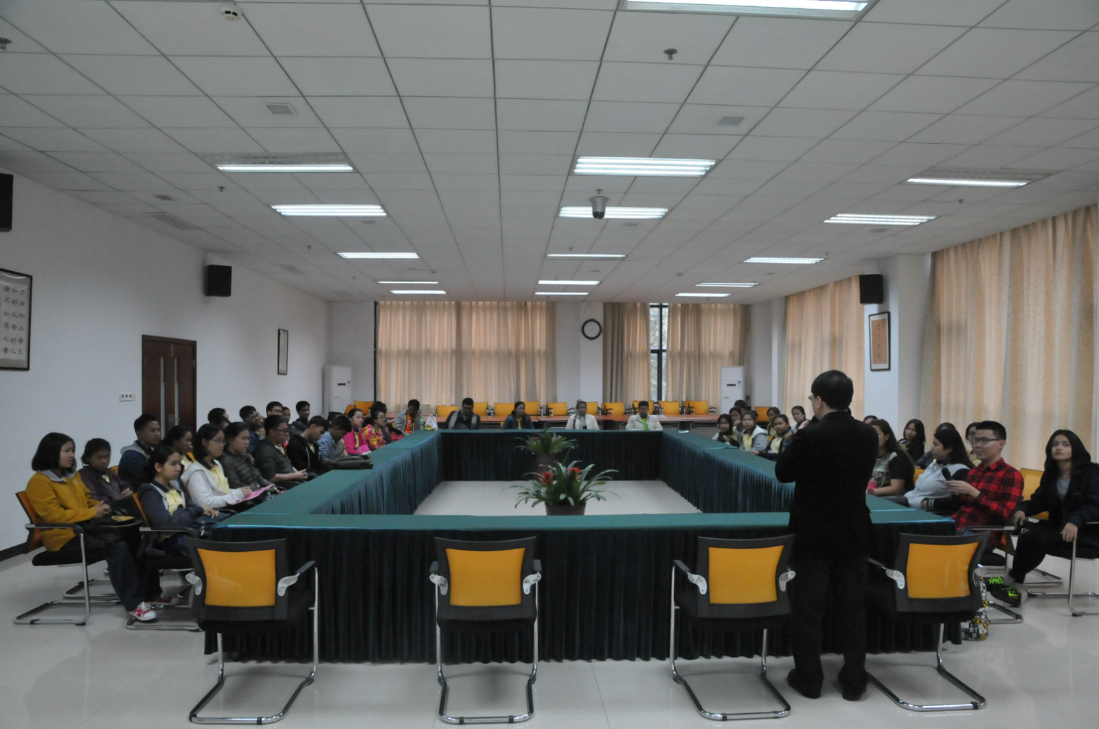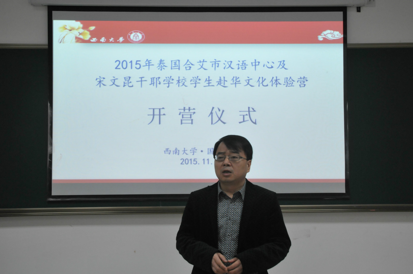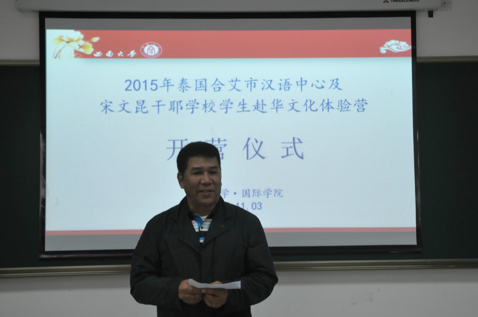 3日早上9:00,欢迎典礼在365上市公司(英国)集团紫云楼312室举行。张家政副院长介绍了重庆的风土人情和西南大学校史与文化,并回顾自己在泰国工作的经历,希望汉语营学生们通过此次访华,进一步了解中国文化,了解西南大学,并欢迎他们高中毕业后到西南大学学习。