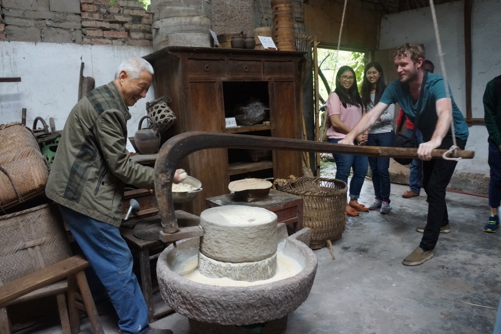 “石磨、草把龙……真是又好玩,又神奇!”留学生们看着古老的农具和民间非物质文化遗产,惊呆了。