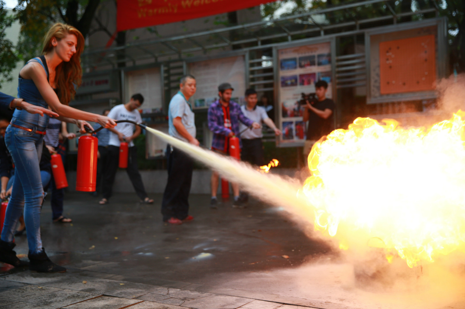 消防安全演练结束后,保卫处消防办主任郭勇还向留学生们现场讲解了如何使用消防灭火器。留学生们纷纷自告奋勇,上前体验灭火器的正确使用方法,增加了对消防器材的直观了解。
