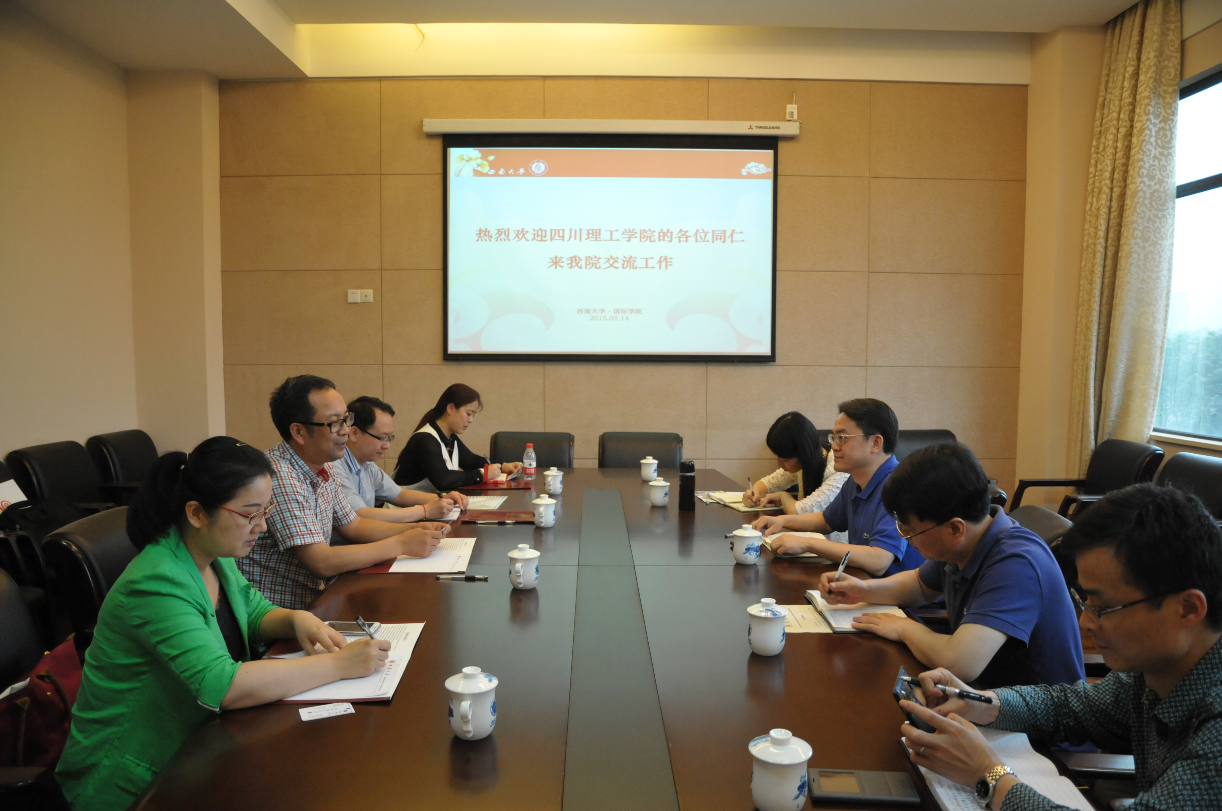 5月14日上午,四川理工学院国际交流处处长夏宏钟一行4人来我院调研。院长张发钧、总支书记兼副院长刘猛、副院长张家政热情接待了来宾。