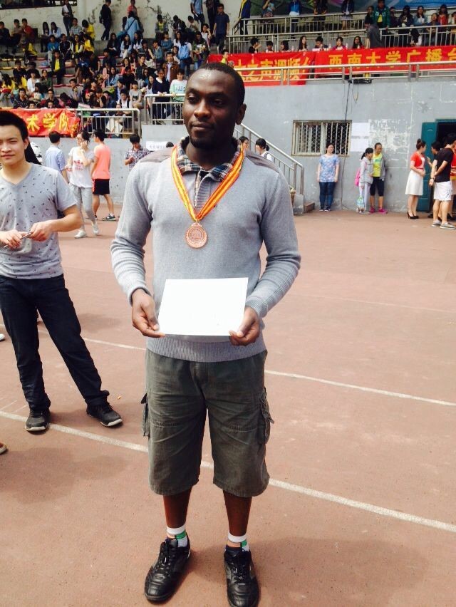 4月26日上午,为期三天的西南大学第十届田径运动会顺利落下帷幕。我校留学生全程参与其中,60名留学生代表穿着本国传统服装,在开幕式的入场方阵中精彩亮相,引爆全场;运动场上,各国留学生运动员和全校中国学生同台竞技,取得了骄人战绩。其中,肯尼亚籍留学生马小君获得男子实心球第二名,哈萨克斯坦籍留学生高兴获得男子跳高第二名,卢旺达籍留学生Lambert获得男子铅球第三名,喀麦隆籍留学生若彩获得女子铅球第七名。